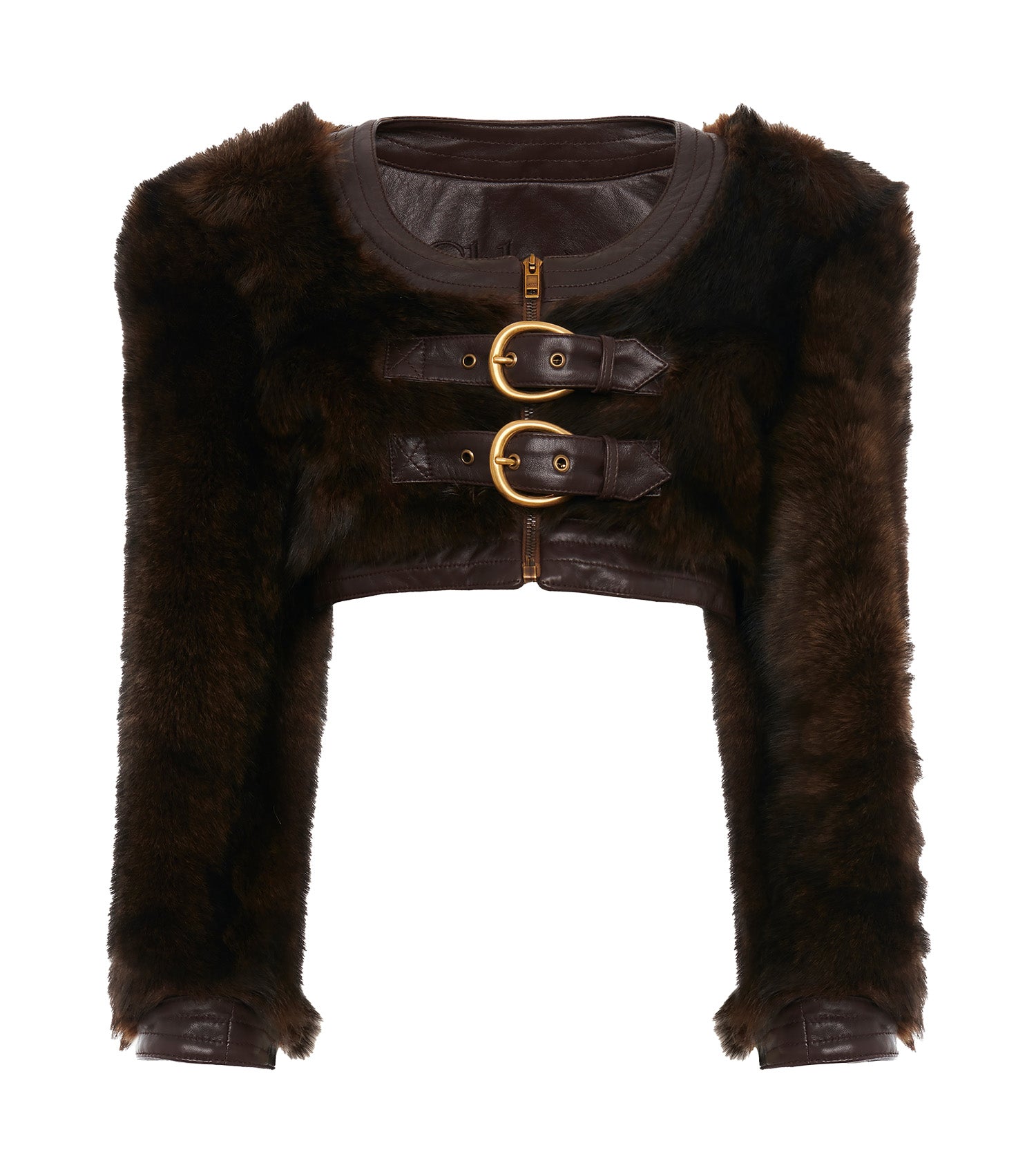 CHLOÉ Lambskin Spencer Cropped Shearling Leather Jacket