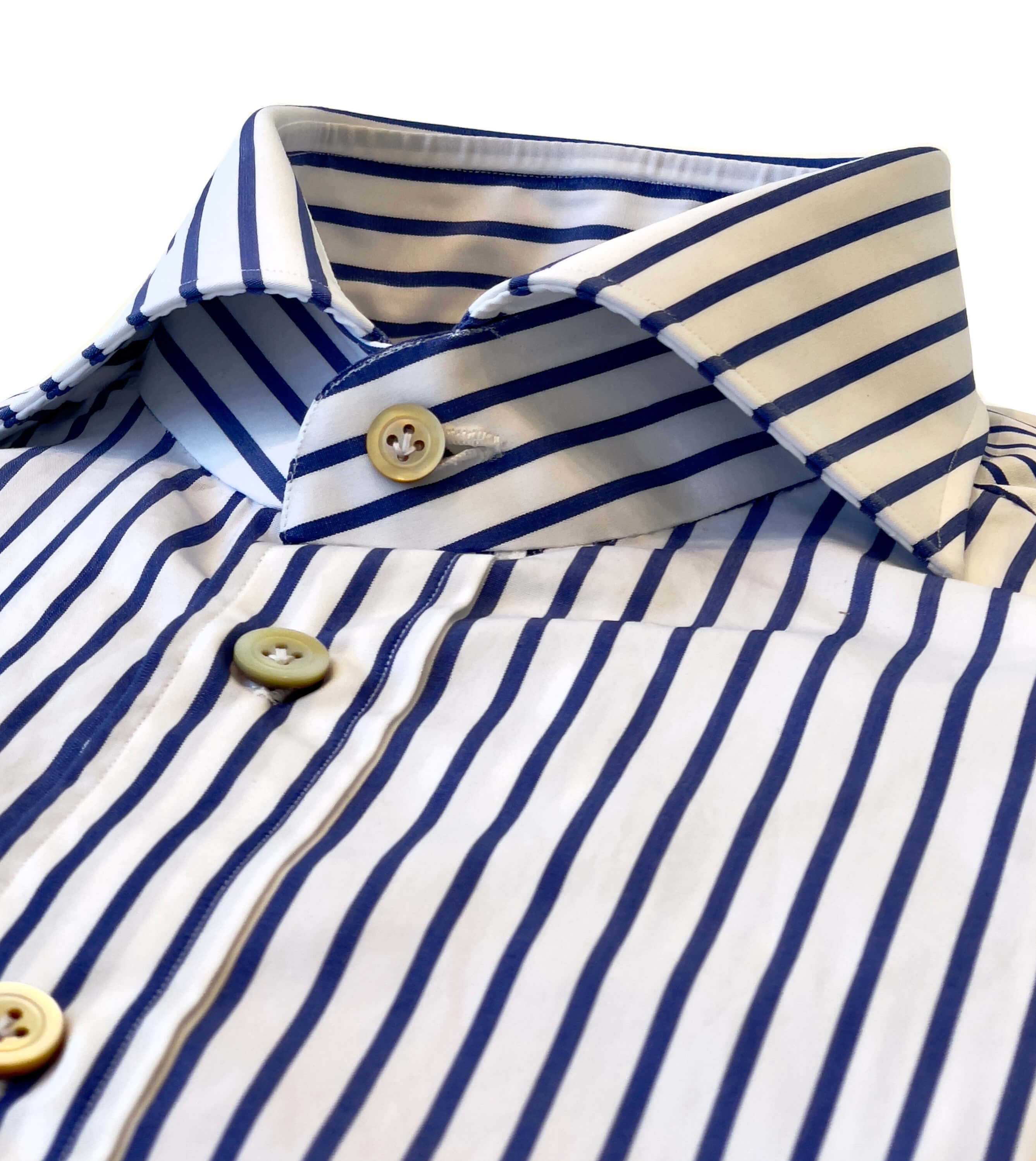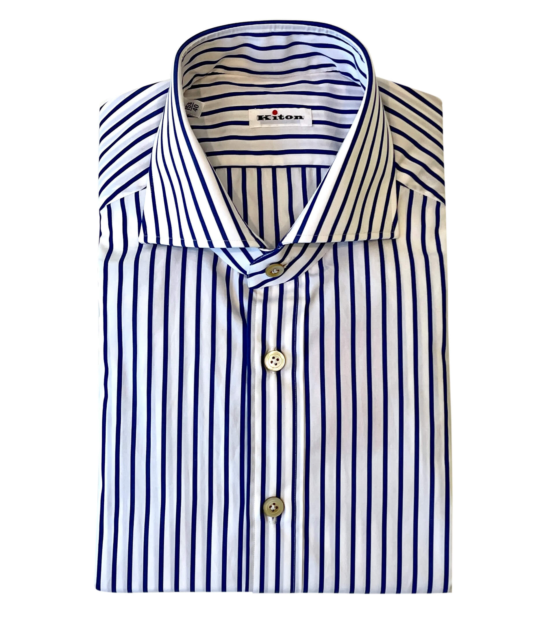Kiton White Ground Blue Stripe Sport Shirt. Handmade in Naples, Italy.