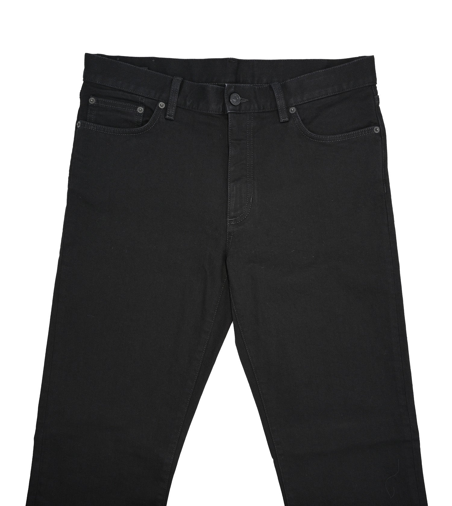 The Classic Comfort Cotton Denim pant is a slim fit done in a solid black color