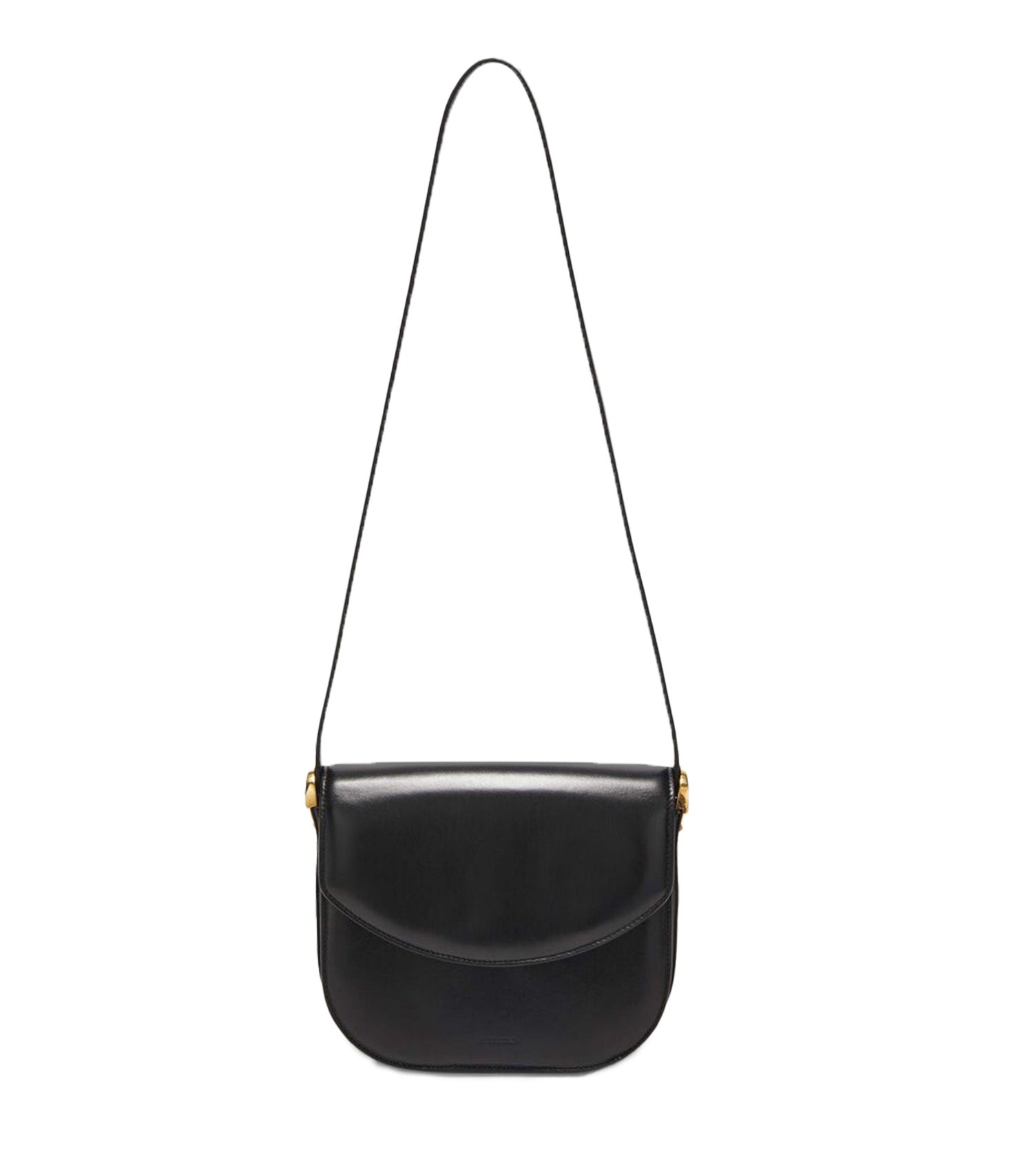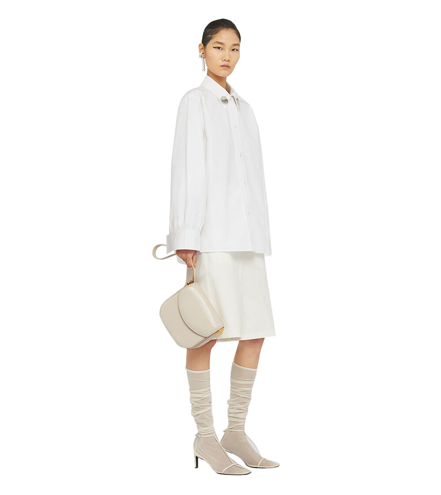 Jil Sander Shoulder Bag. Medium-sized leather crossbody bag with gold metal coin detail and embossed Jil Sander logo.