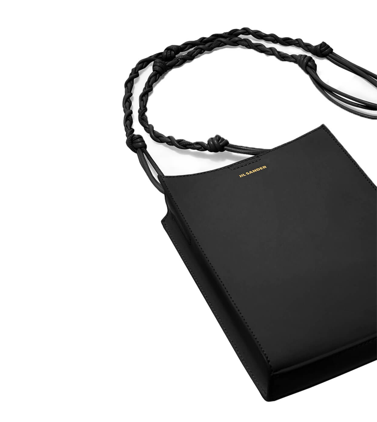 JIL SANDER Small-sized leather shoulder and crossbody bag with hand-knotted strap and embossed Jil Sander logo.