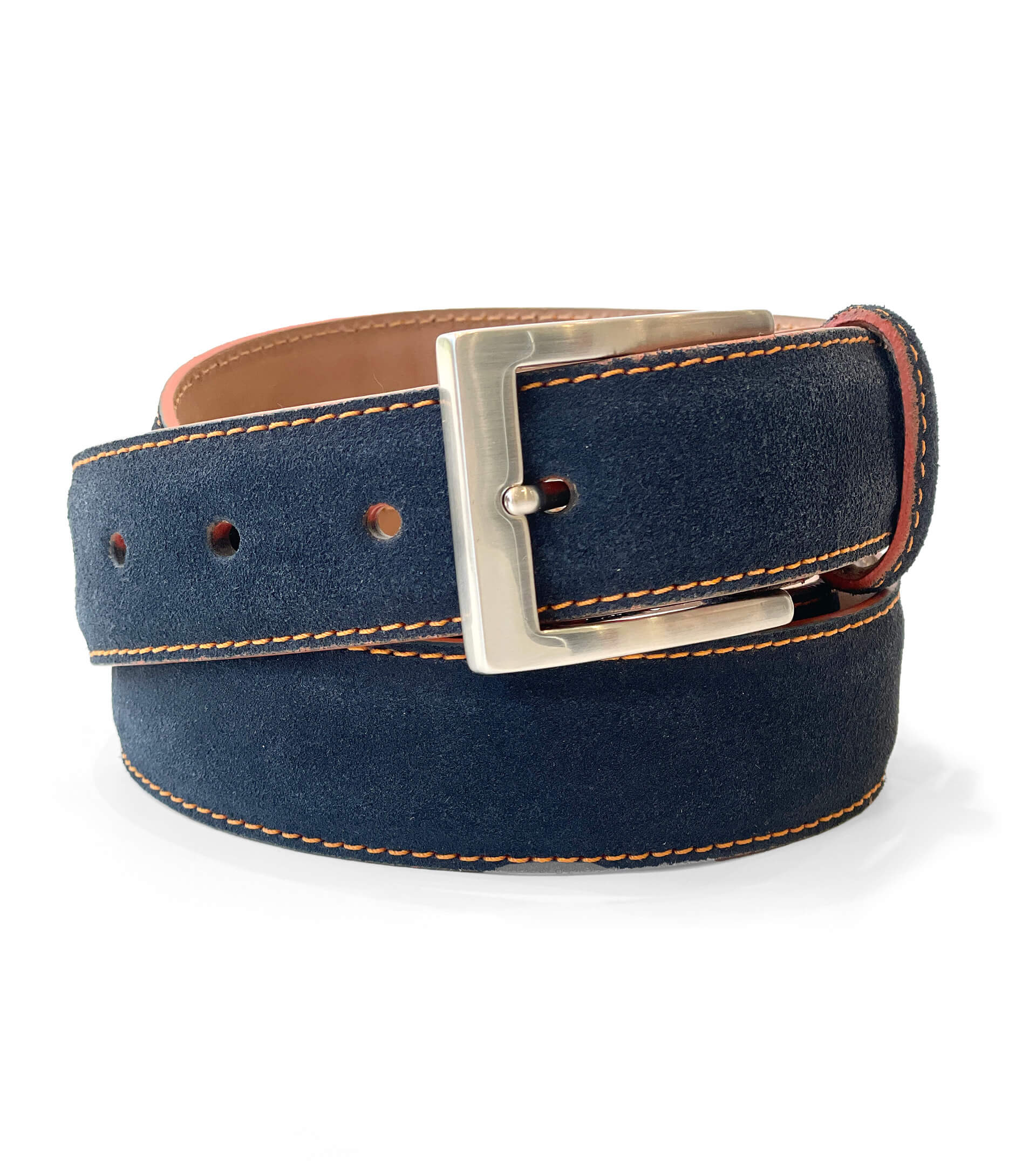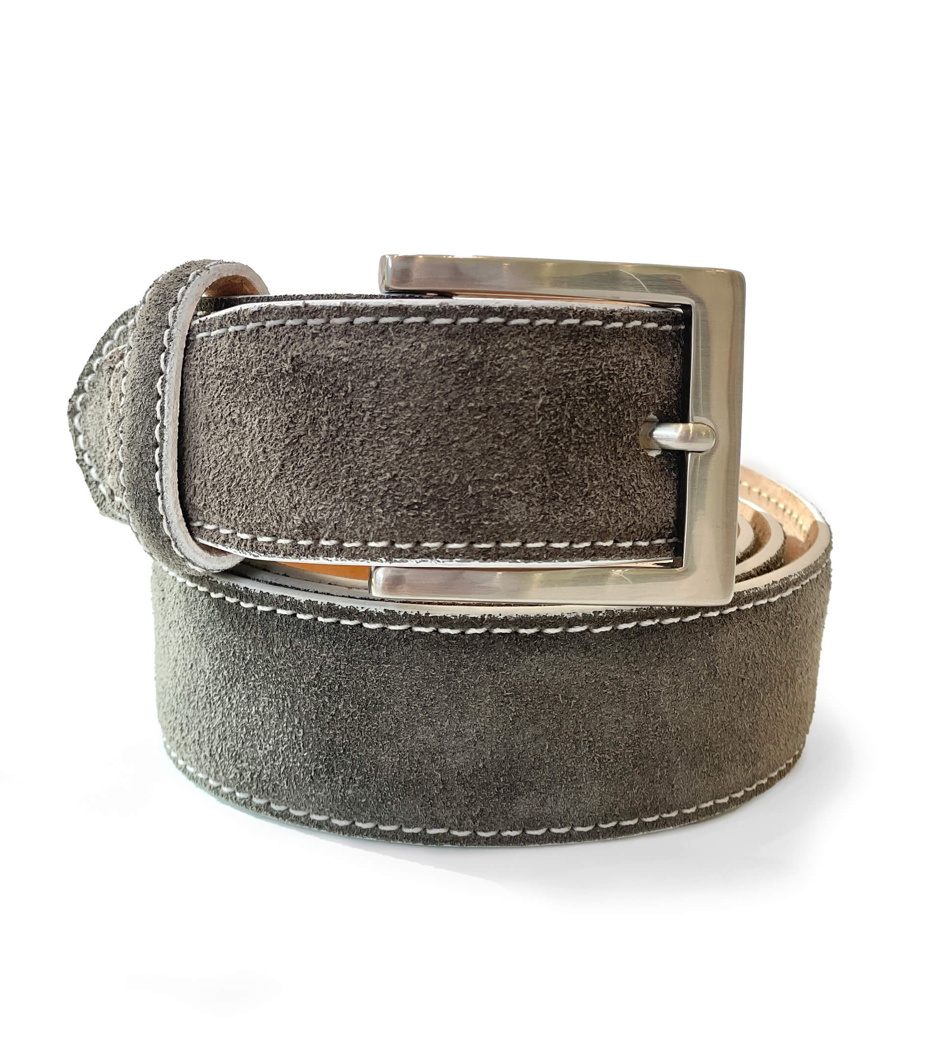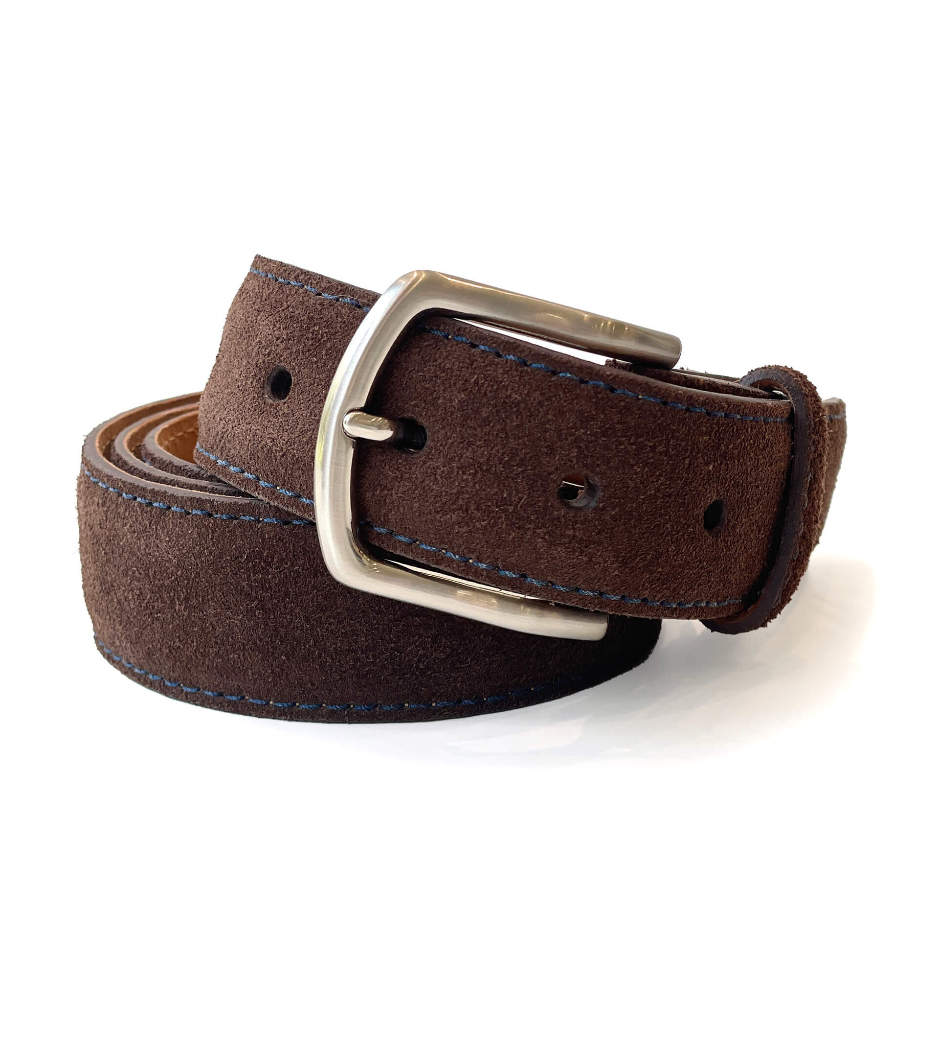 1 3/8" Sueded Calf Belt with Contrast Stitching.