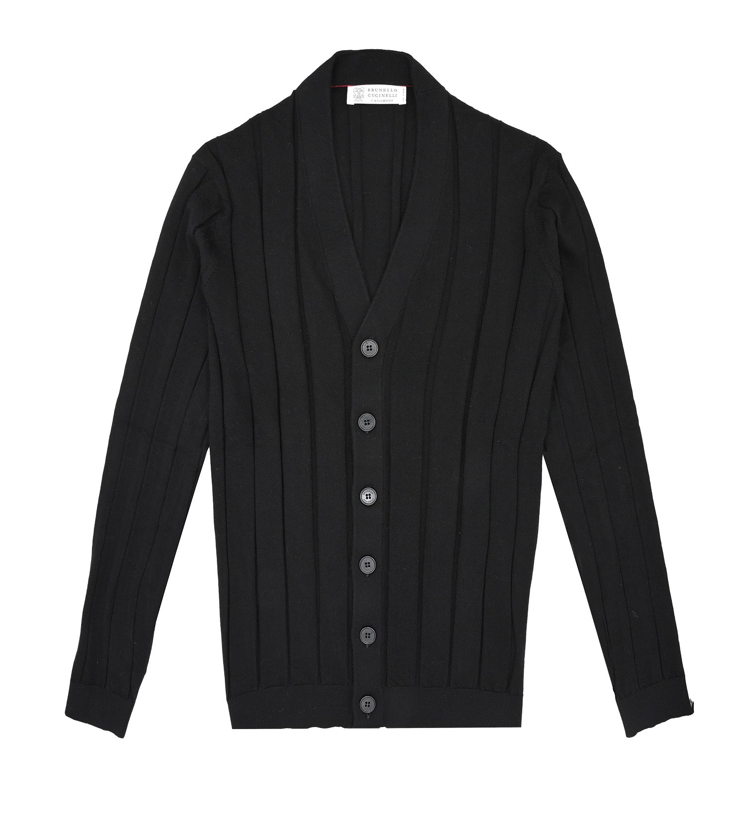 Brunello Cucinelli Ribbed Lightweight Cardigan Sweater, in black.