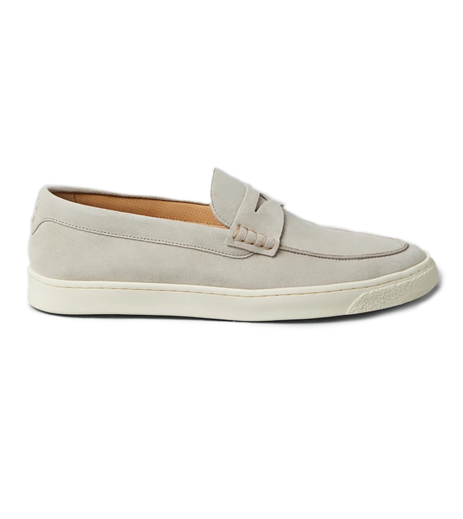 Brunello Cucinelli Suede Slip On with Gum Sole. Made in Italy. The casual yet elegant look of suede enhances this footwear’s classic shape, while its lightweight construction and natural latex outsole provide added comfort.