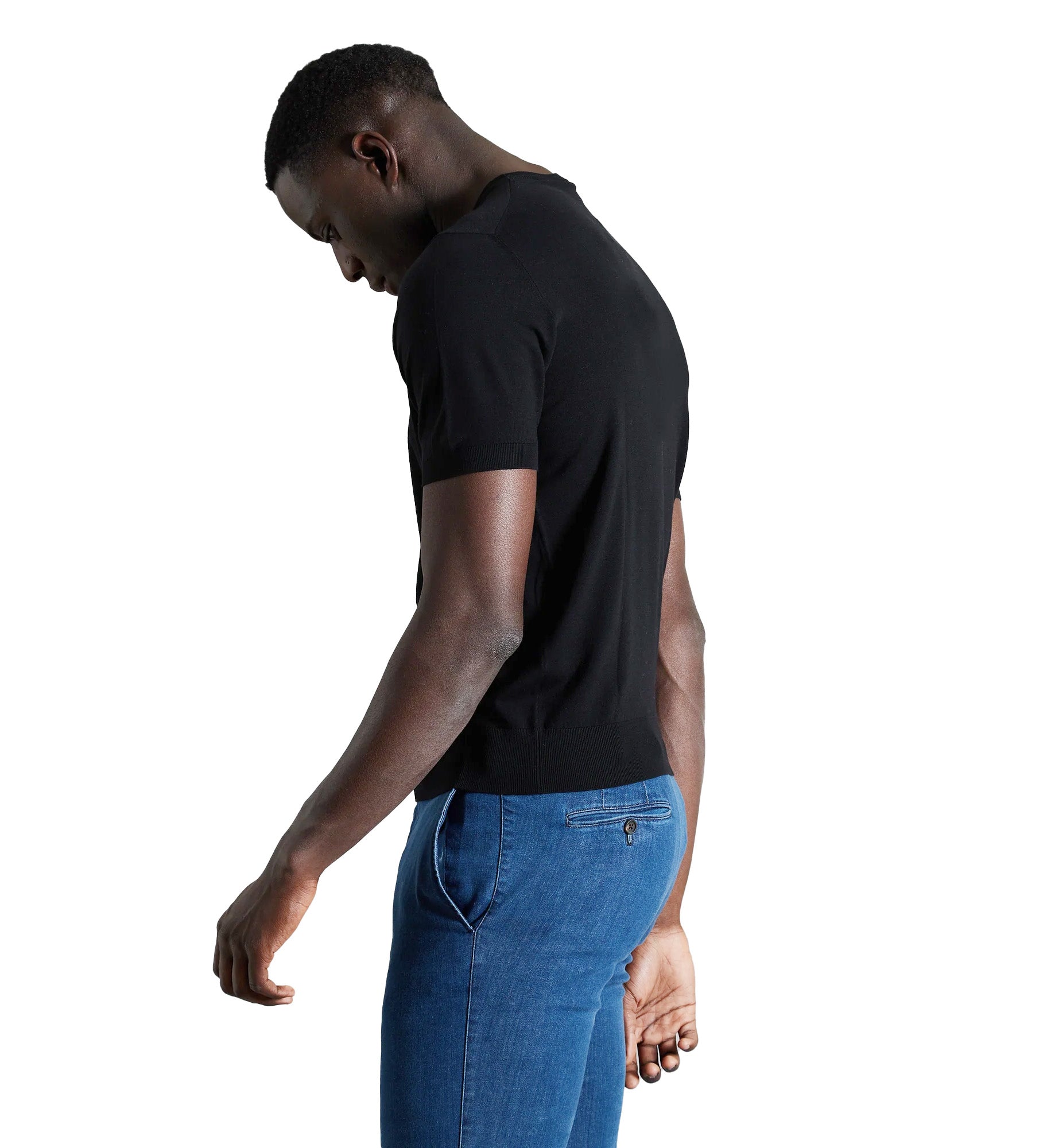 Colombo 12.8 Micron Kid Wool Sleeve Sweater. T-shirt sweater crafted in precious 12.8 Kid Wool. A garment for true connoisseurs and lovers of the noblest and rarest fibers. Their exclusive properties of lightness and softness give the utmost wellbeing.