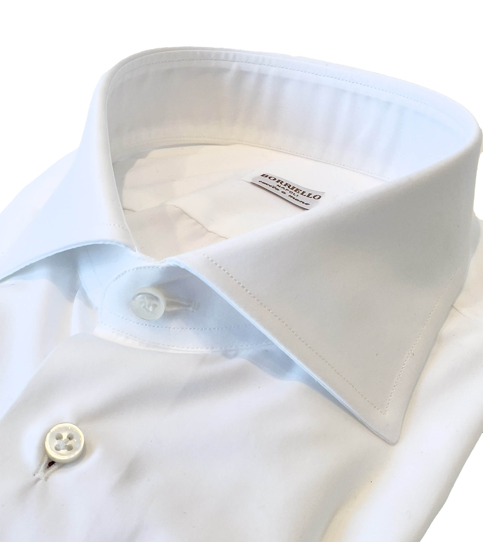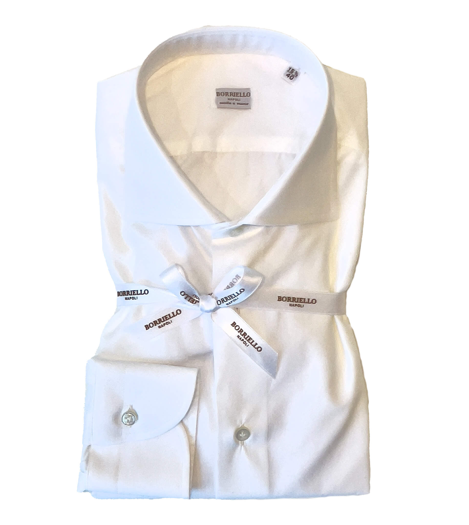 Borriello White Dress Shirt. Spread Collar, Button Cuff, Made in Italy.