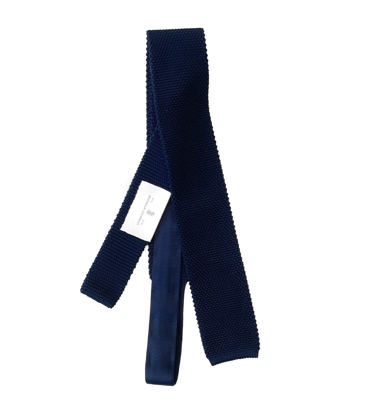 Brunello Cucinelli Blue Knitted Tie. A timeless classic as well as a sartorial favorite, every gentleman should have a navy knitted silk tie in their wardrobe.