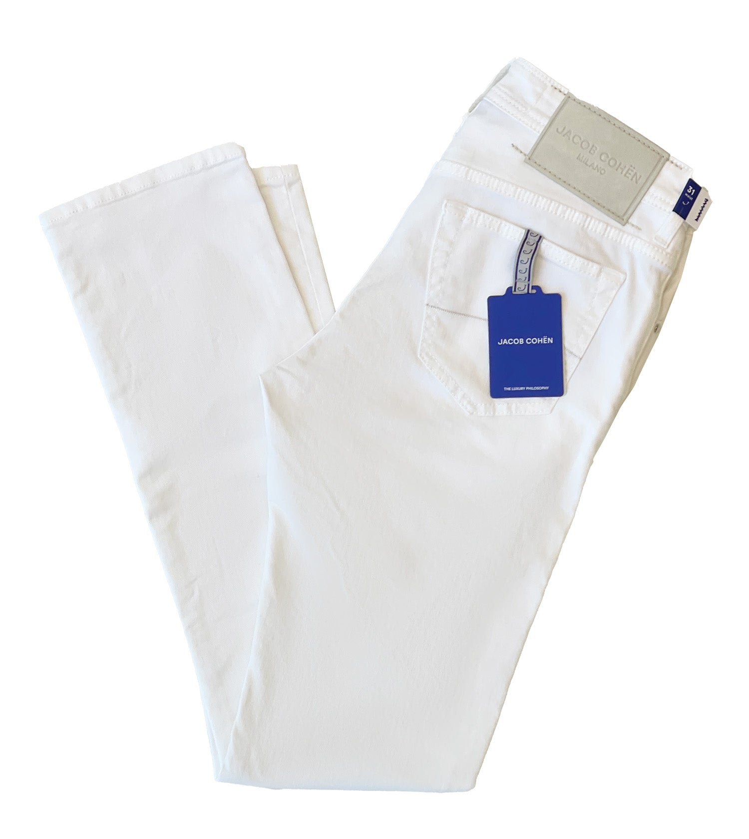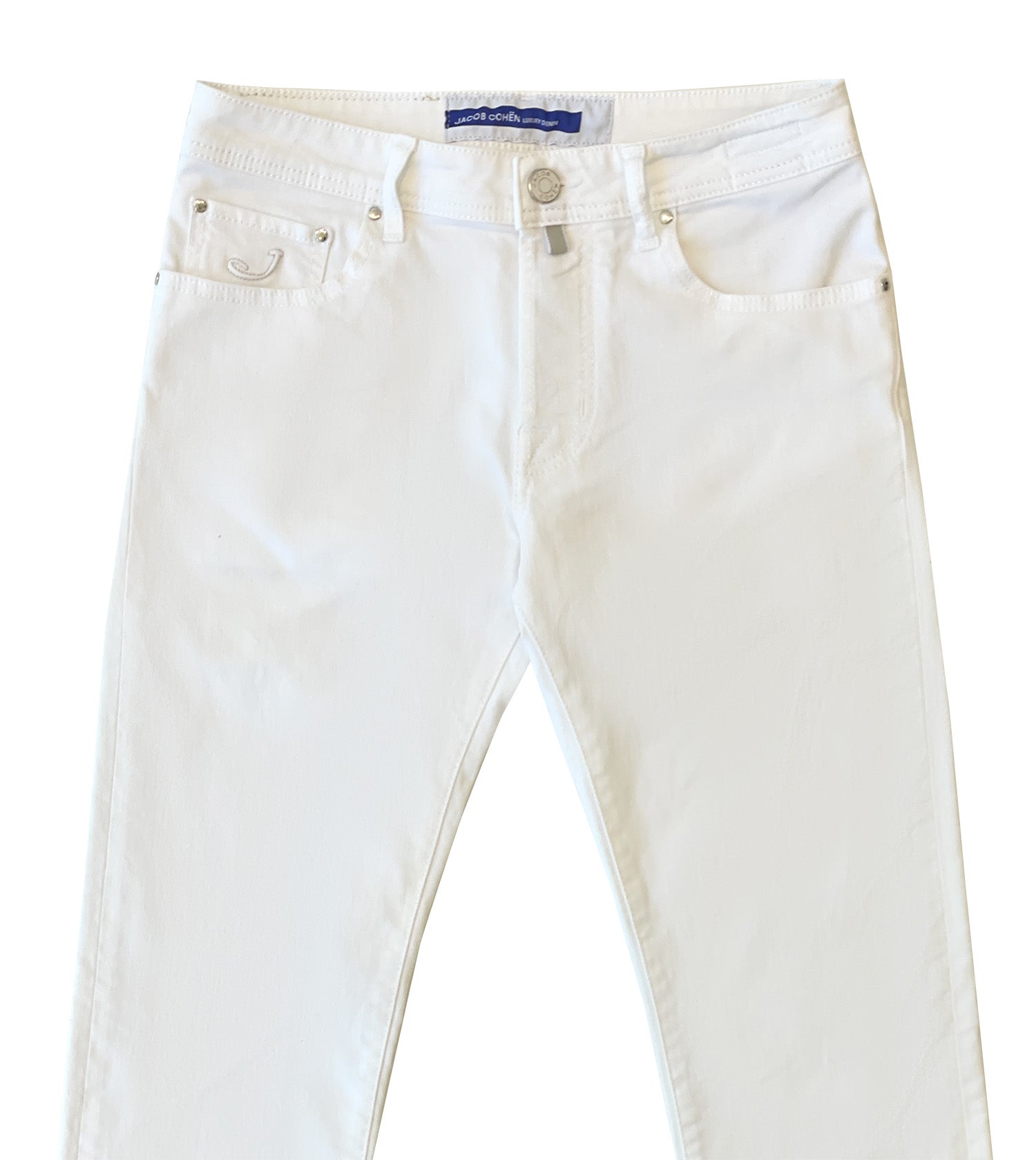 Jacob Cohen 5 Pocket Slim Fit White Denim. Bard Model. Made in Italy.