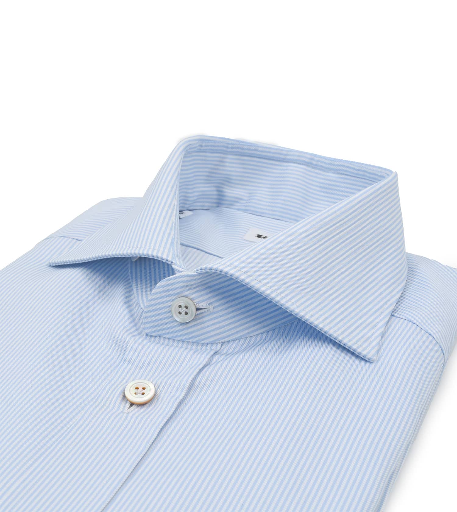 Cotton twill Blue and White striped dress shirt, with exquisite tailoring