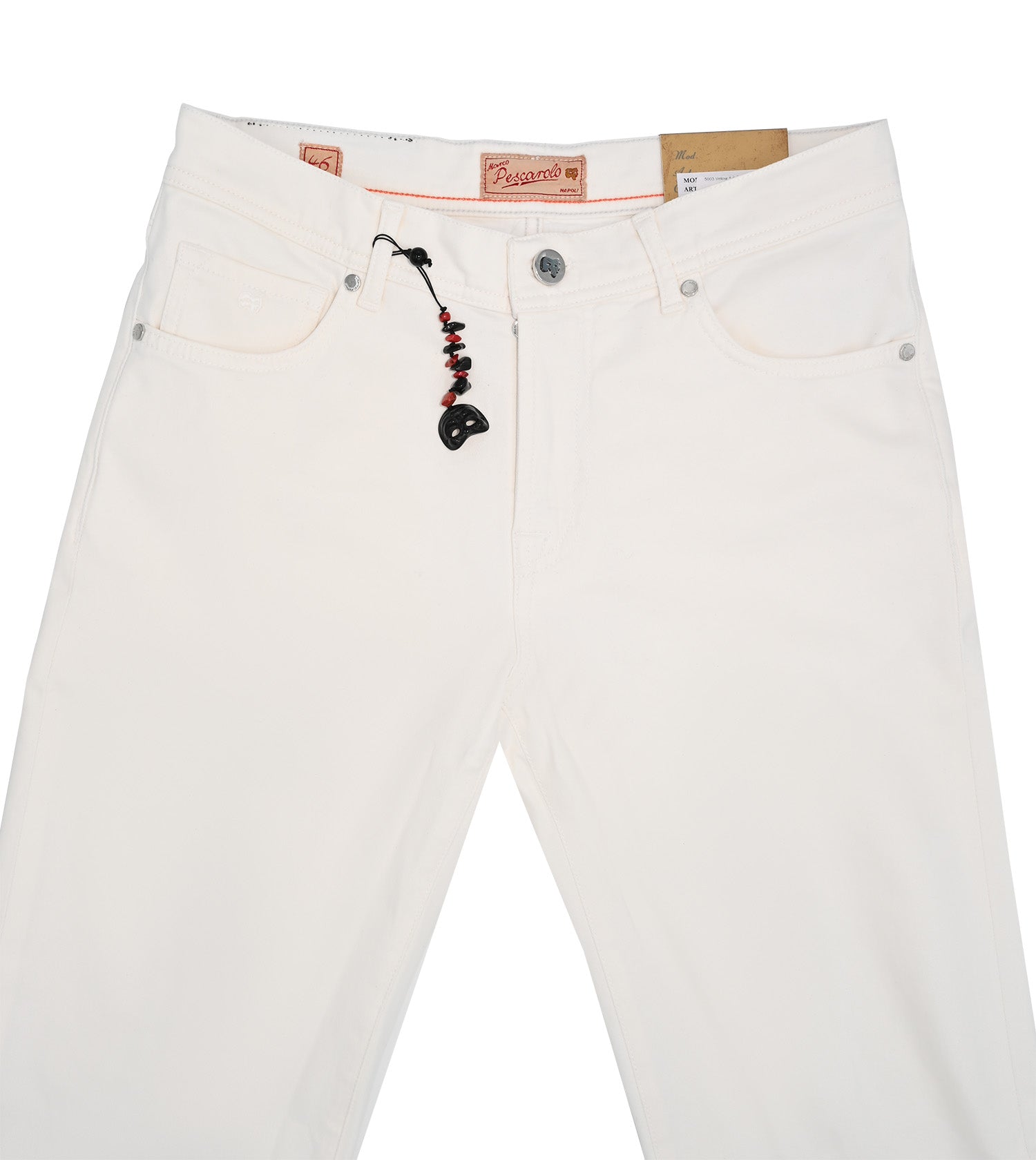 - MARCO PESCAROLO White Garment Dyed Velour 5 Pocket Pant
