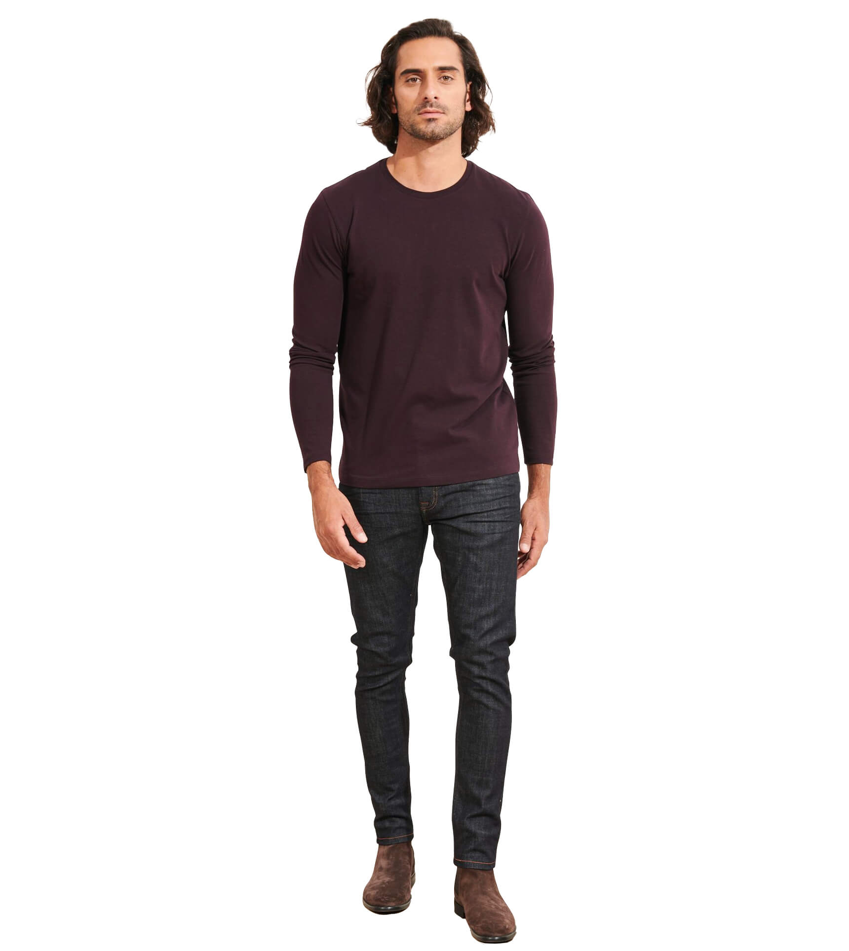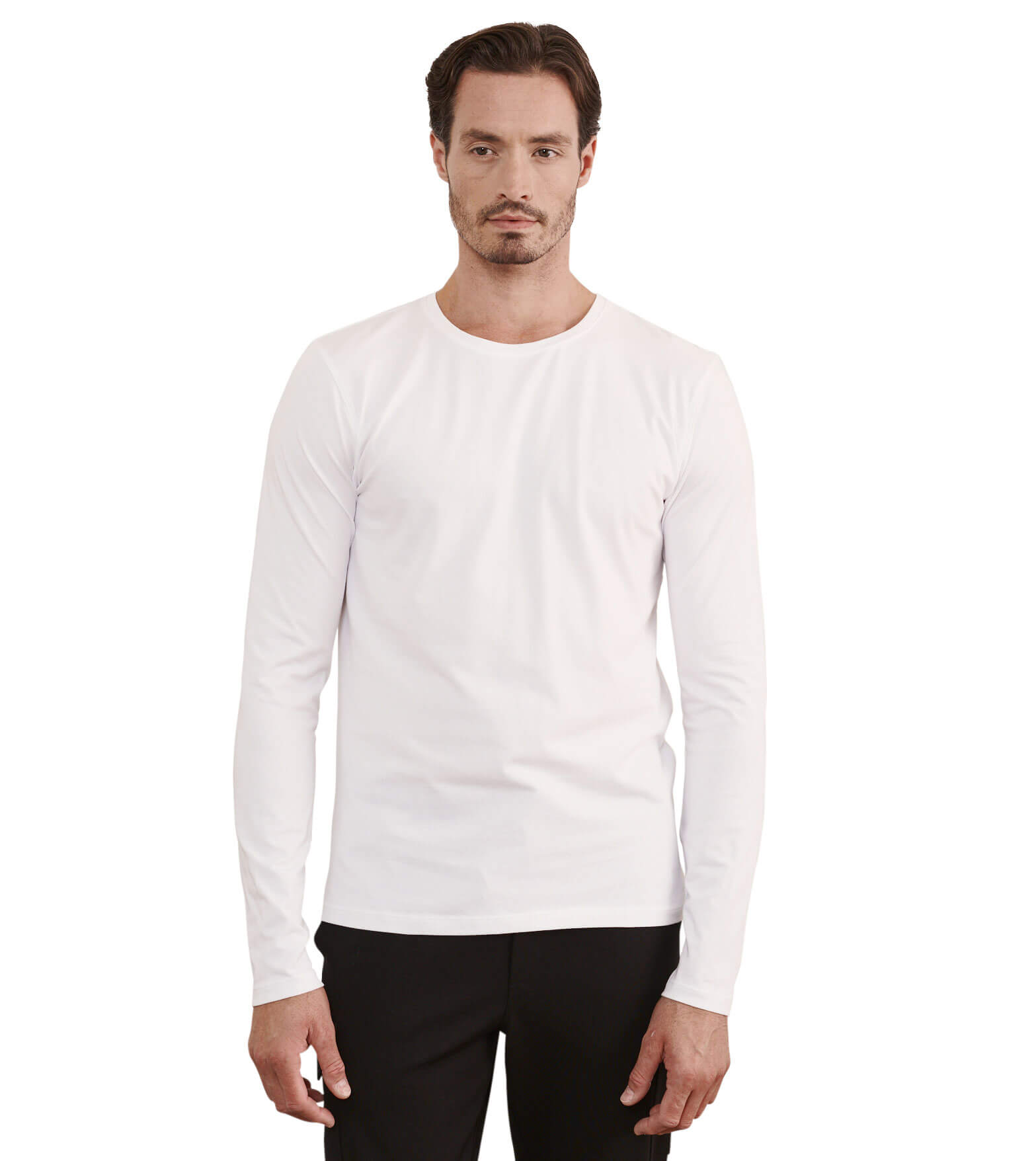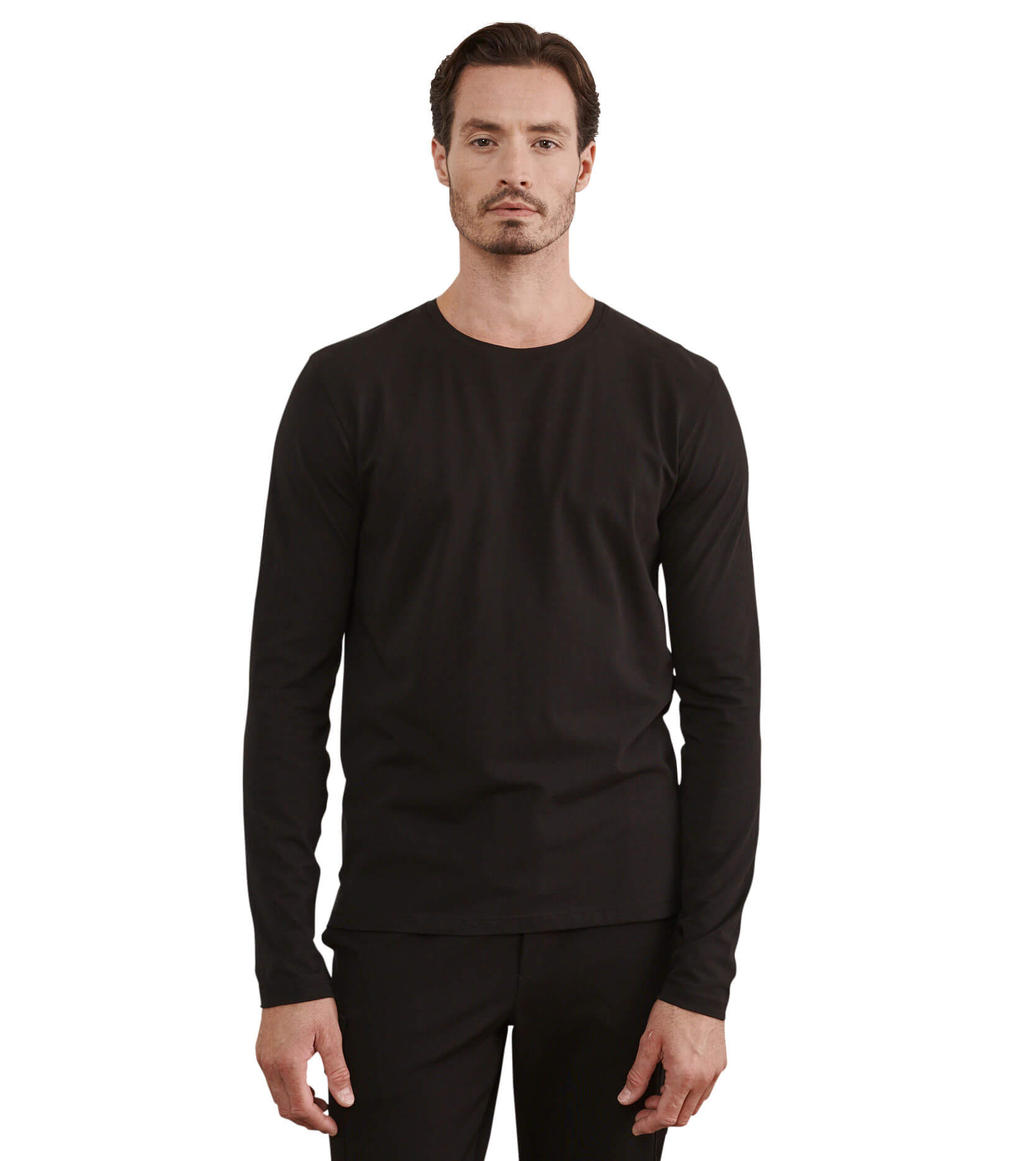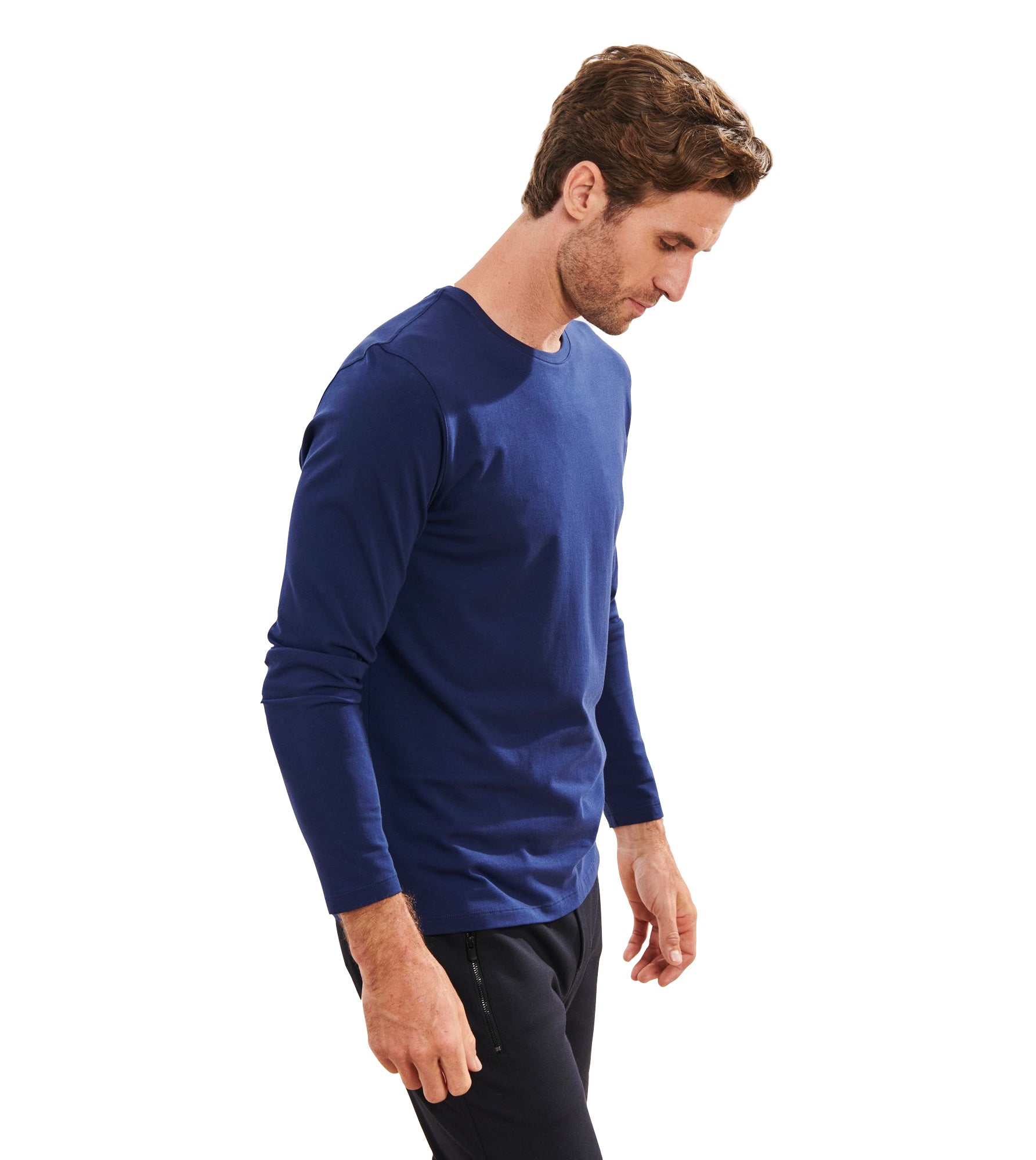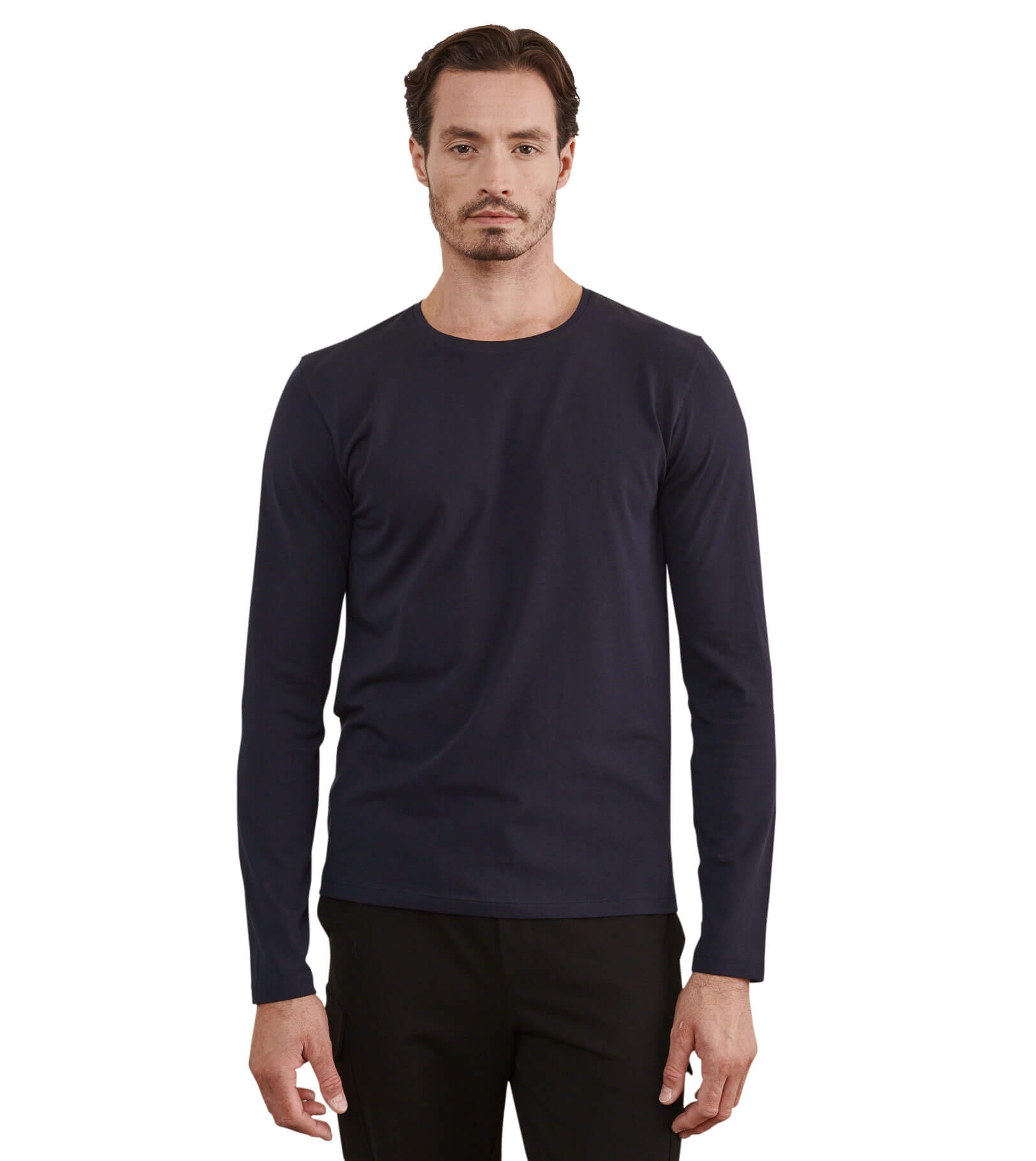 PYA long sleeve crewneck T-Shirt is made from a peruvian Pima Cotton stretch fabric. The fabric is pre-shrunk prior to garment construction, minimizing shrinkage and offering long-lasting performance. it has a luxurious silky hand feel and the added feature of stretch for extra comfort. this is a highly versatile item and an ideal layering piece.