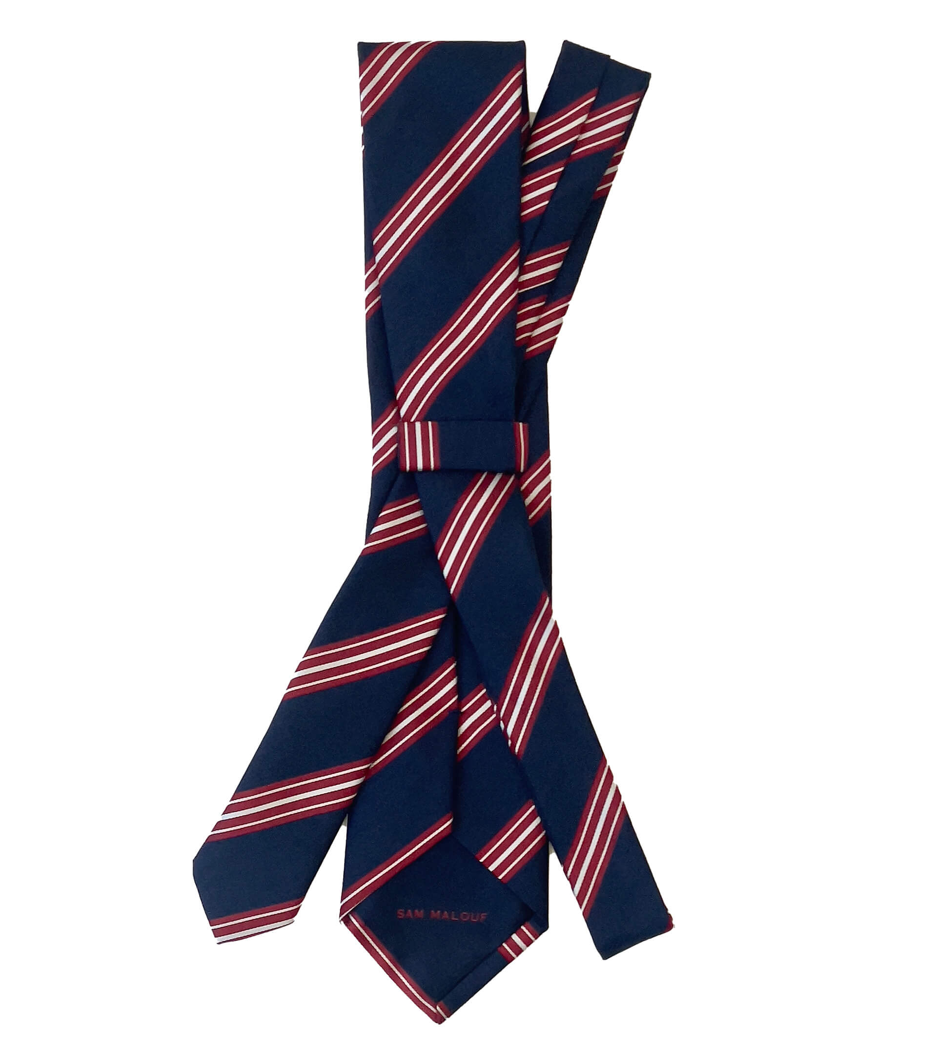 Sam Malouf Orange Label 100% Silk Tie with Regimental Stripe