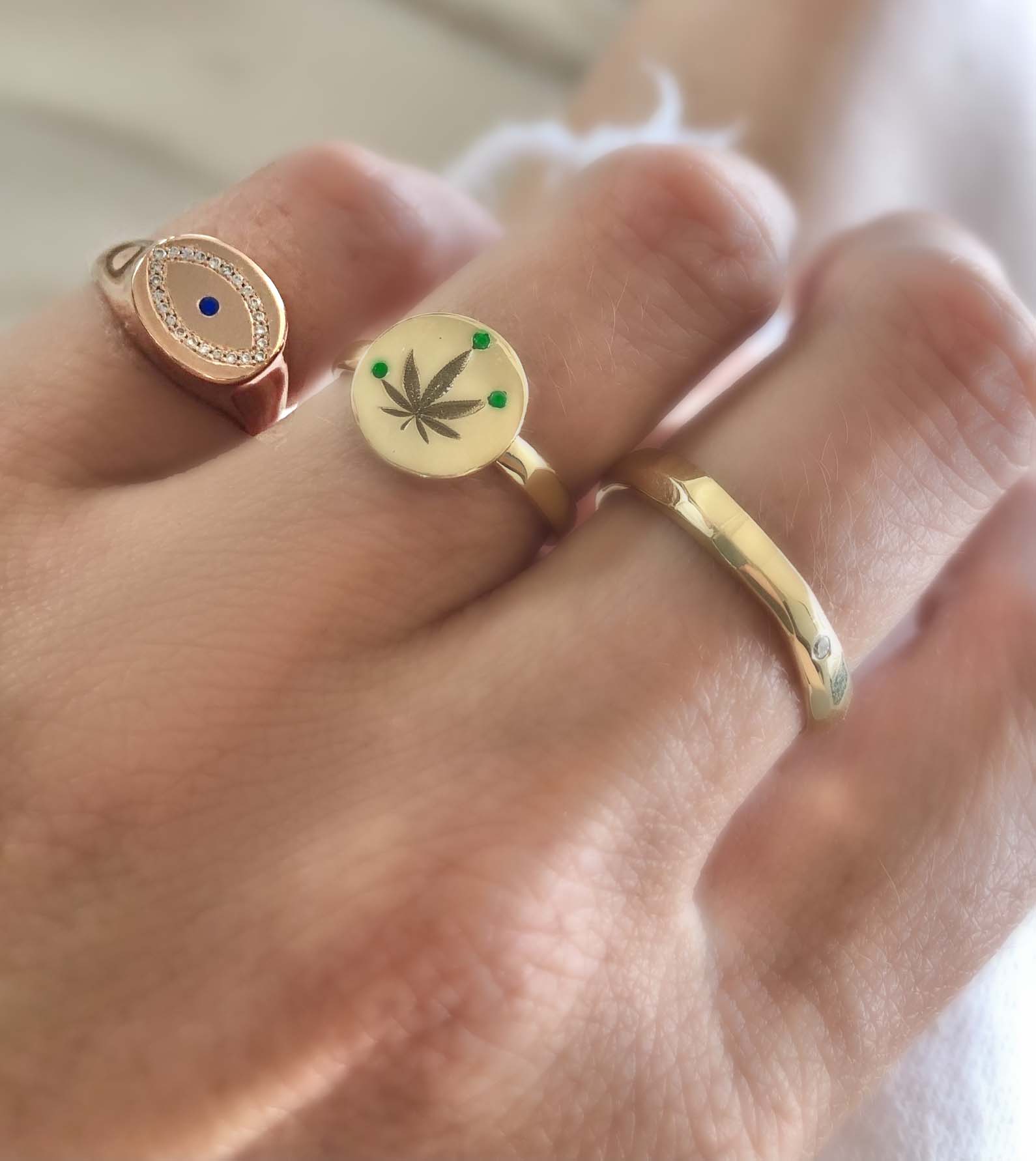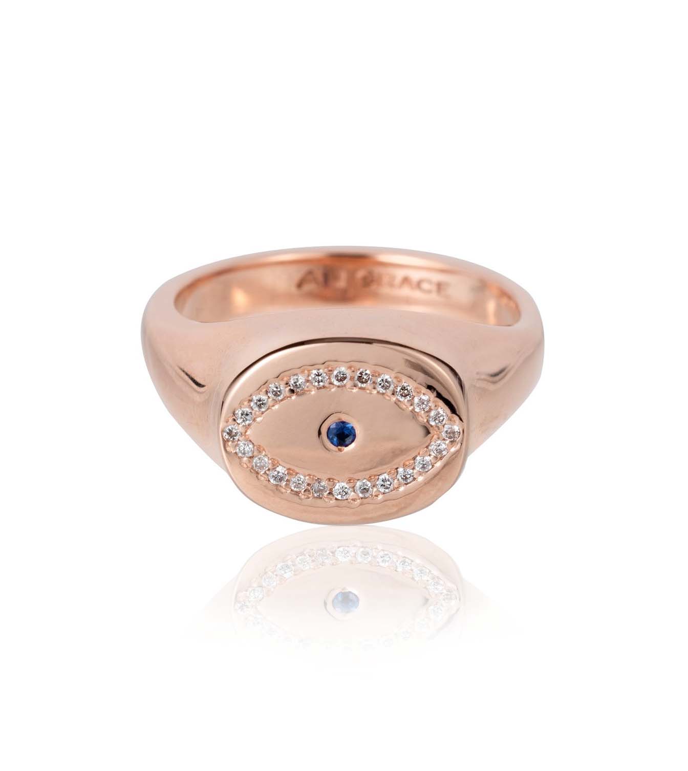 14k Rose Gold w/ Diamonds & Sapphire Evil Eye Signet Ring