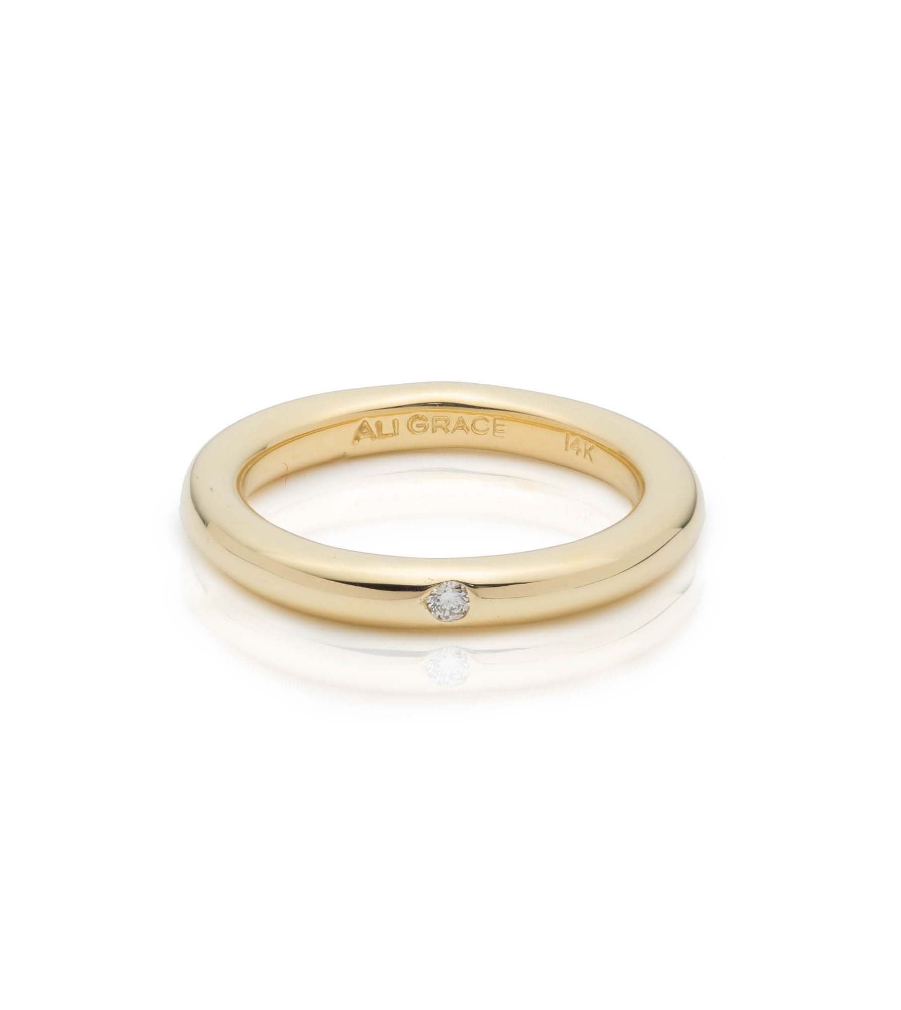 - Rounded band accented with a delicate diamond set in the middle of the ring.