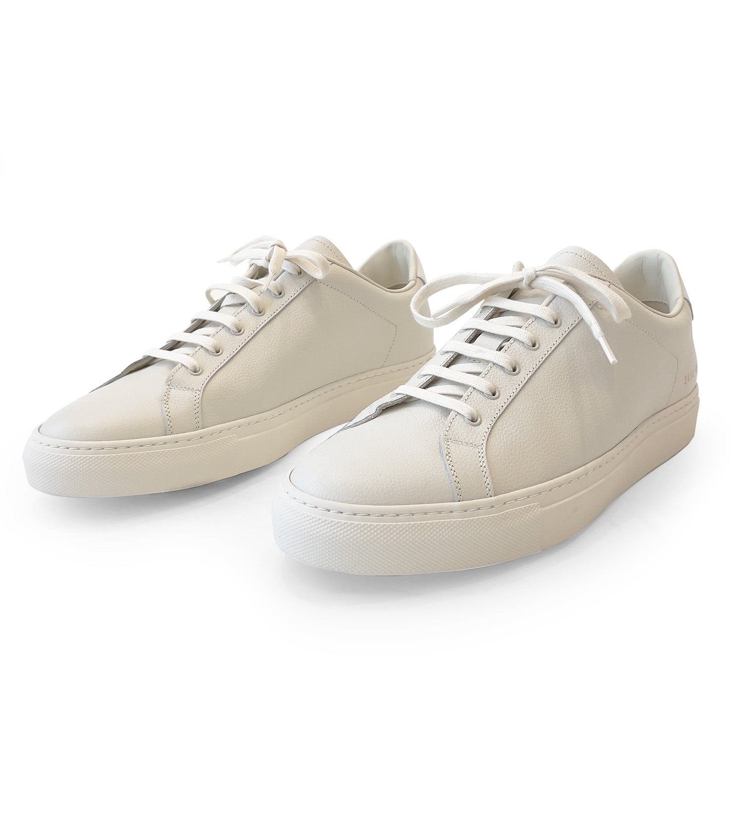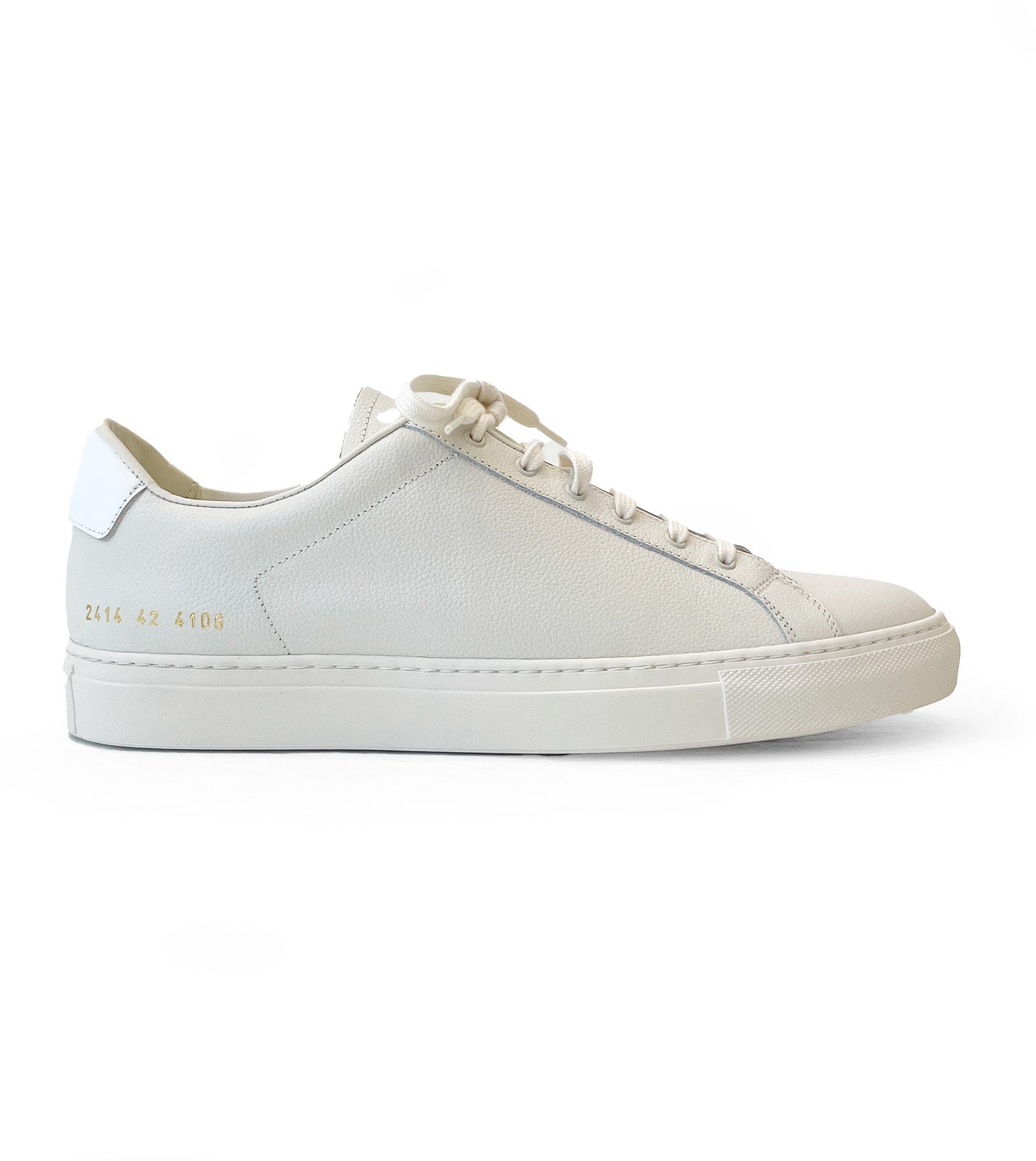 Common Projects Retro Bumpy. Bumpy Nappa Leather Upper, Contrast Laces and Stitch Reinforced Sole. Gold Foil Article Stamp at Heel Counter.