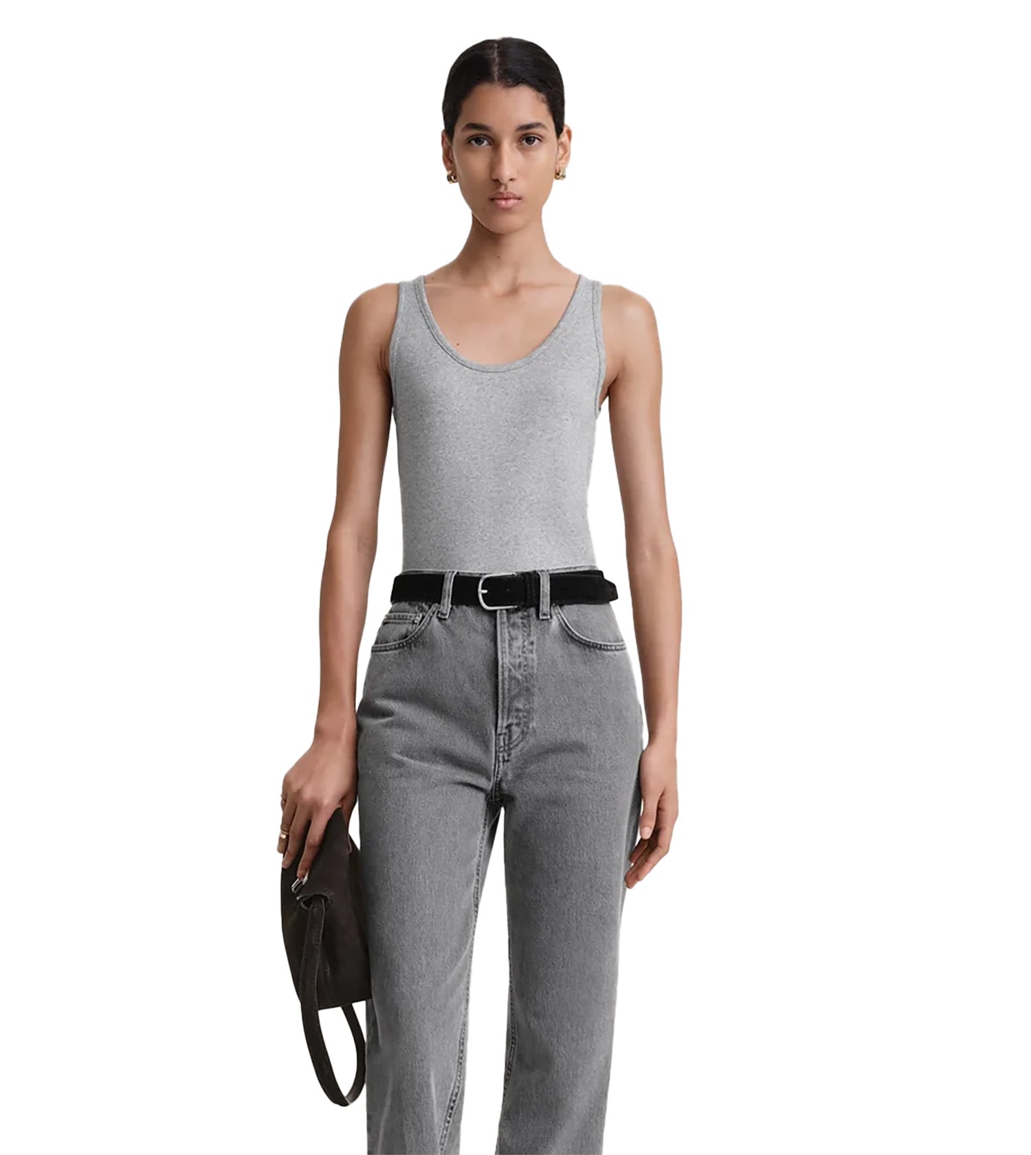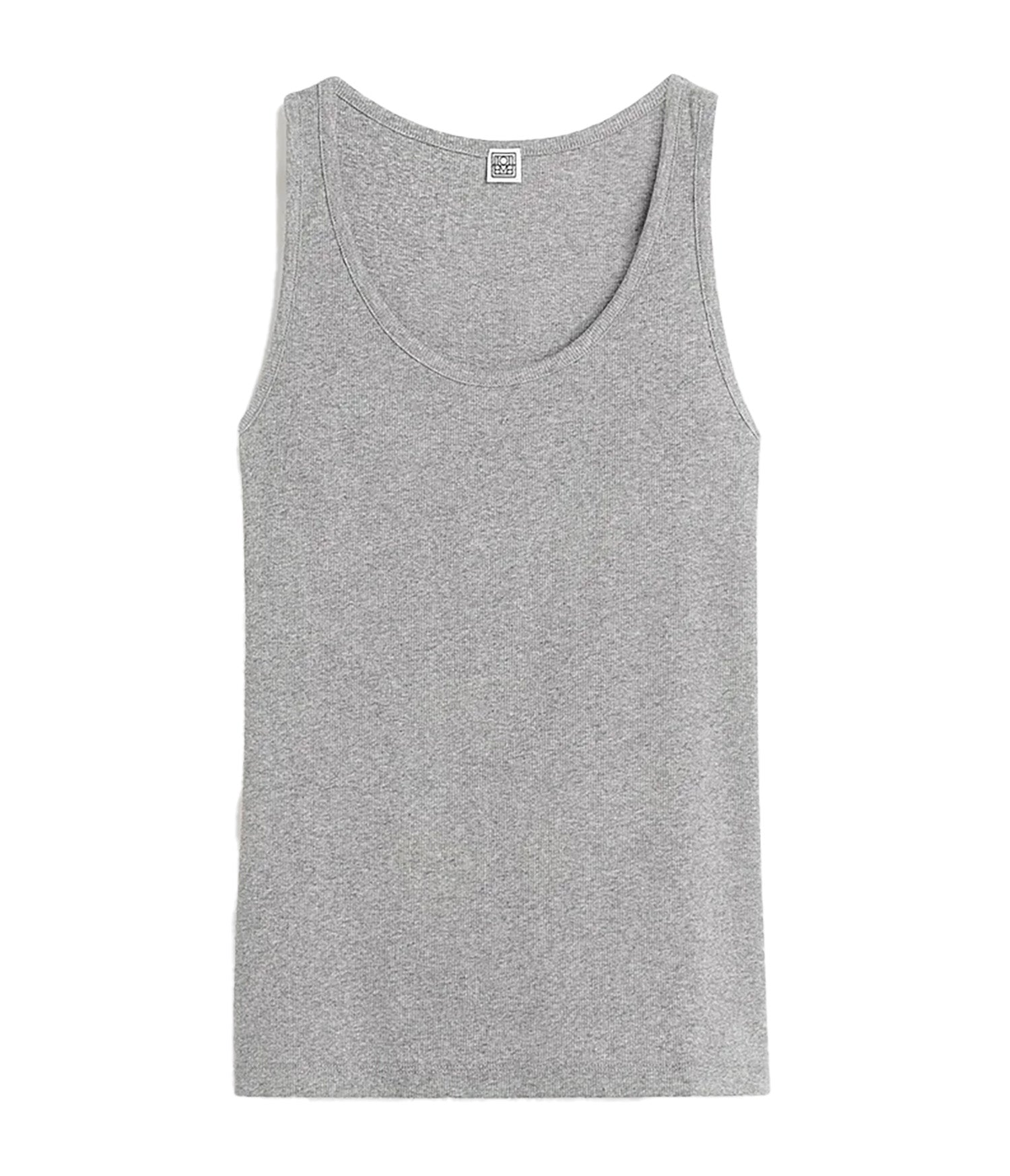 Toteme Classic rib tank. Everyday TOTEME tank top outlined with a scoop neckline and slim silhouette. It's made from ribbed organic cotton jersey blended with a touch of elastane for a comfortable, body-hugging fit. Wear it on its own or as a base layer to trans-seasonal looks.
