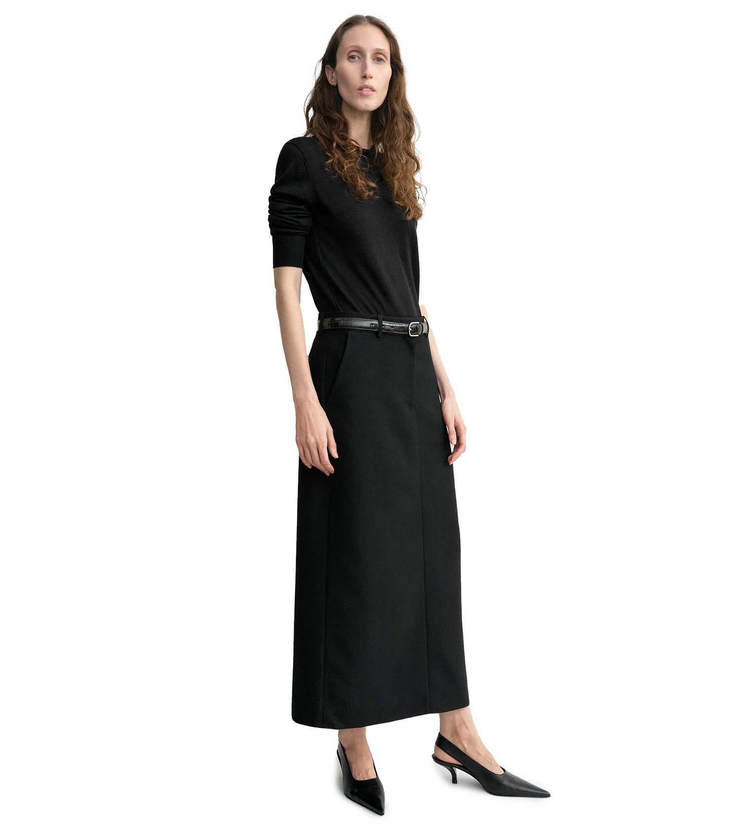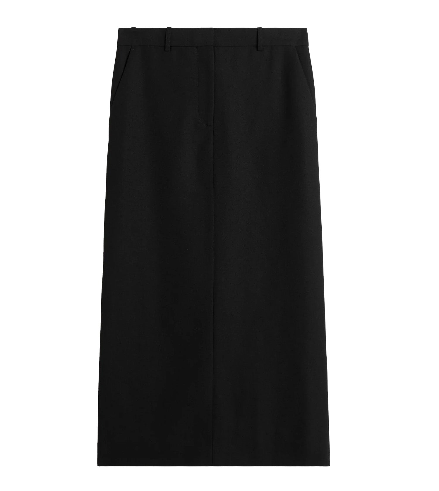 Toteme Low Waist Straight Skirt. Designer’s note: “This skirt from the TOTEME Garderob curation feels mature and feminine – a sartorial piece instilled with a confident attitude. It's crafted from our signature suiting canvas to a long, straight silhouette finished with classic tailoring details. Try it with a fine knit and slingbacks for the perfect office look.”