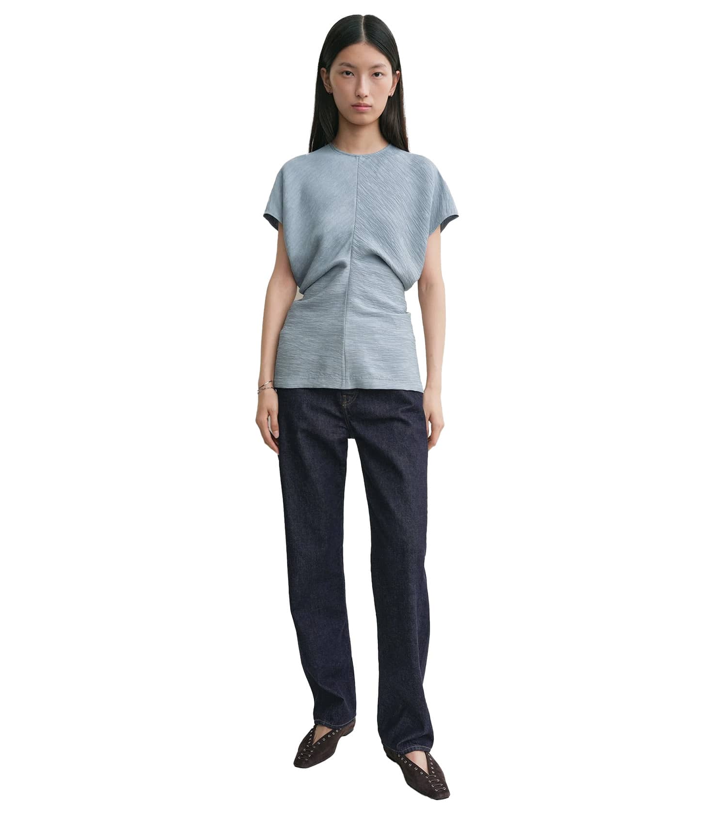 Toteme Slouch Waist Top constructed from curved panels that create a slouching effect at the waist when sewn together.