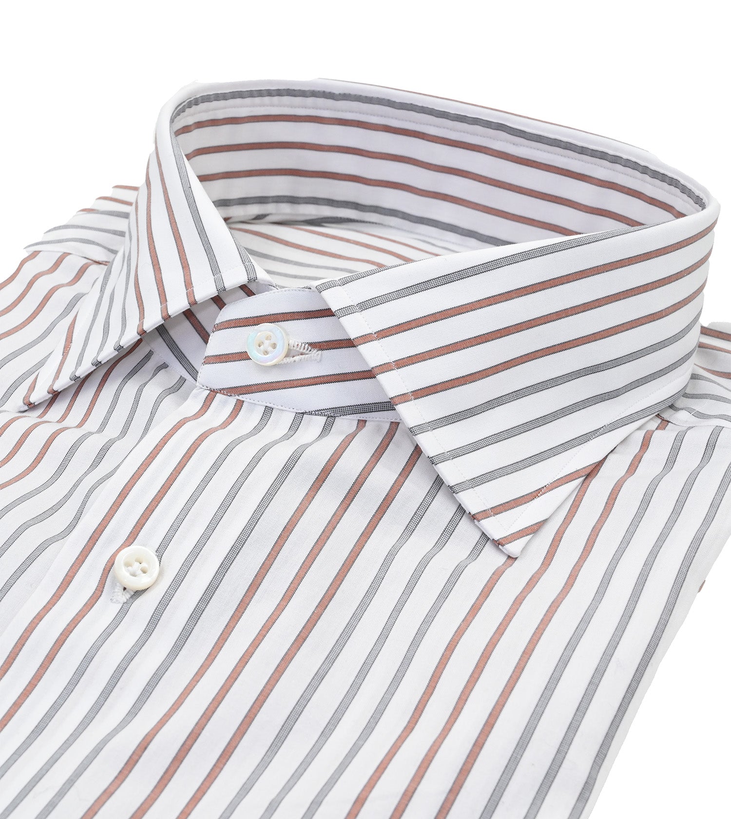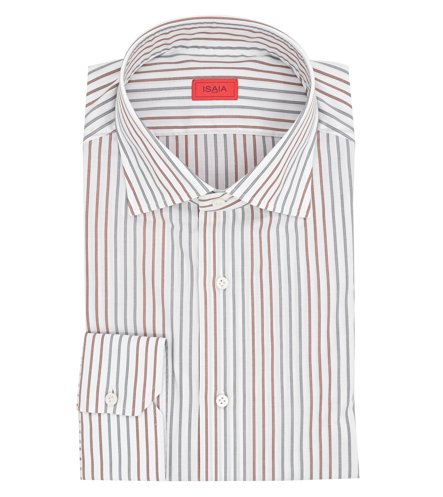 ISAIA White Ground with Red Vertical Stripe Dress Shirt