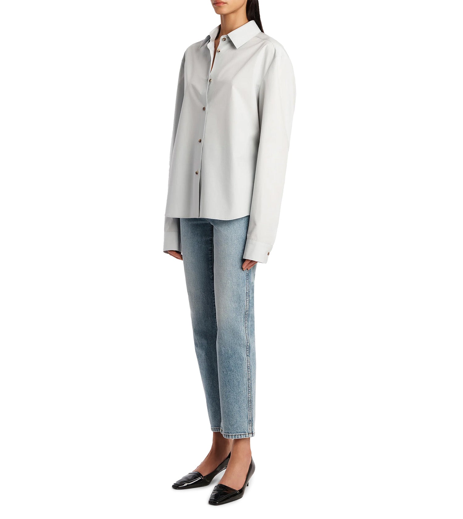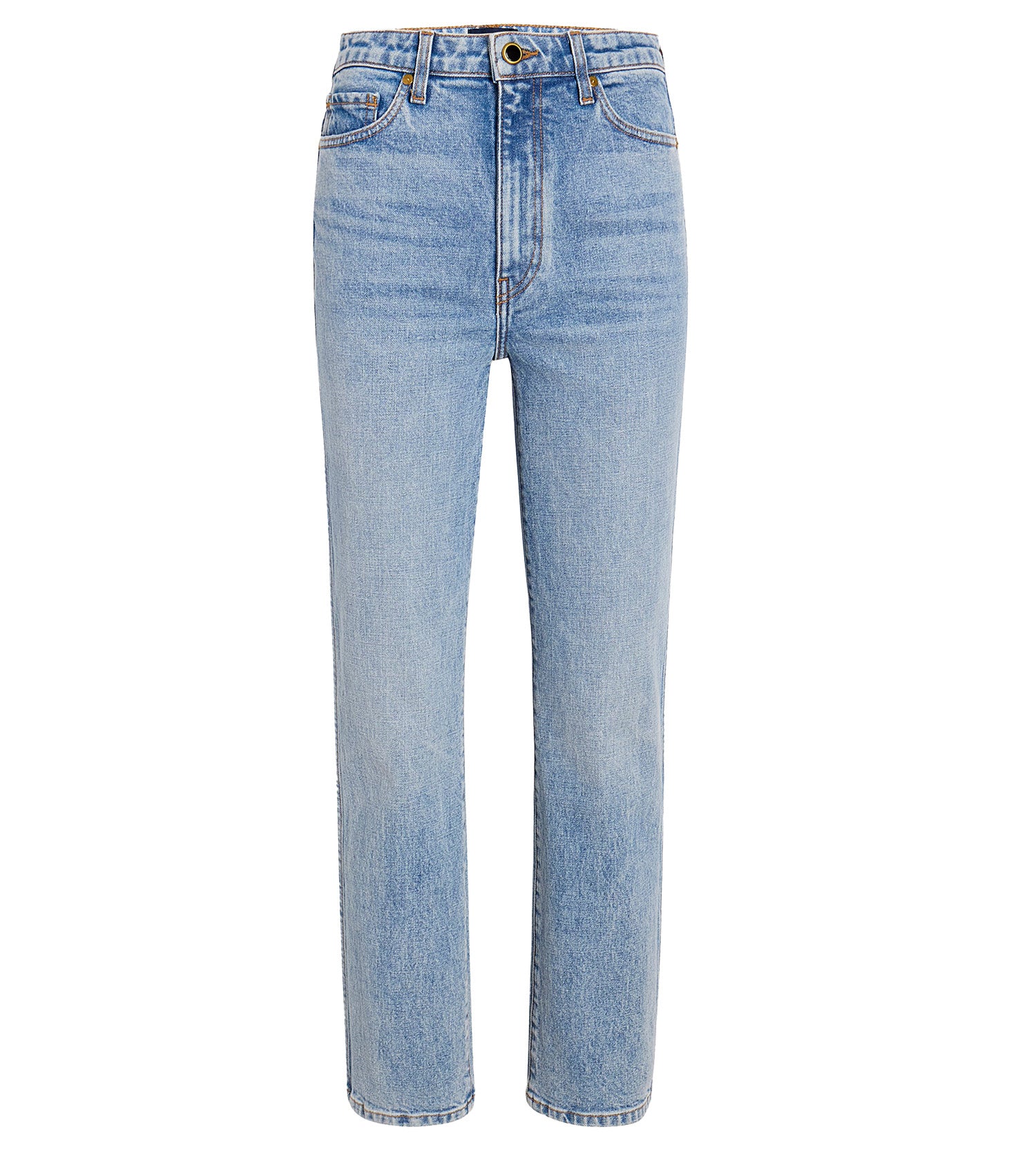 Khaite Abigail Jean/Bryce Stretch. A cropped length balances a high rise, creating fresh and flattering proportions with classic straight-leg styling and hand finishing.