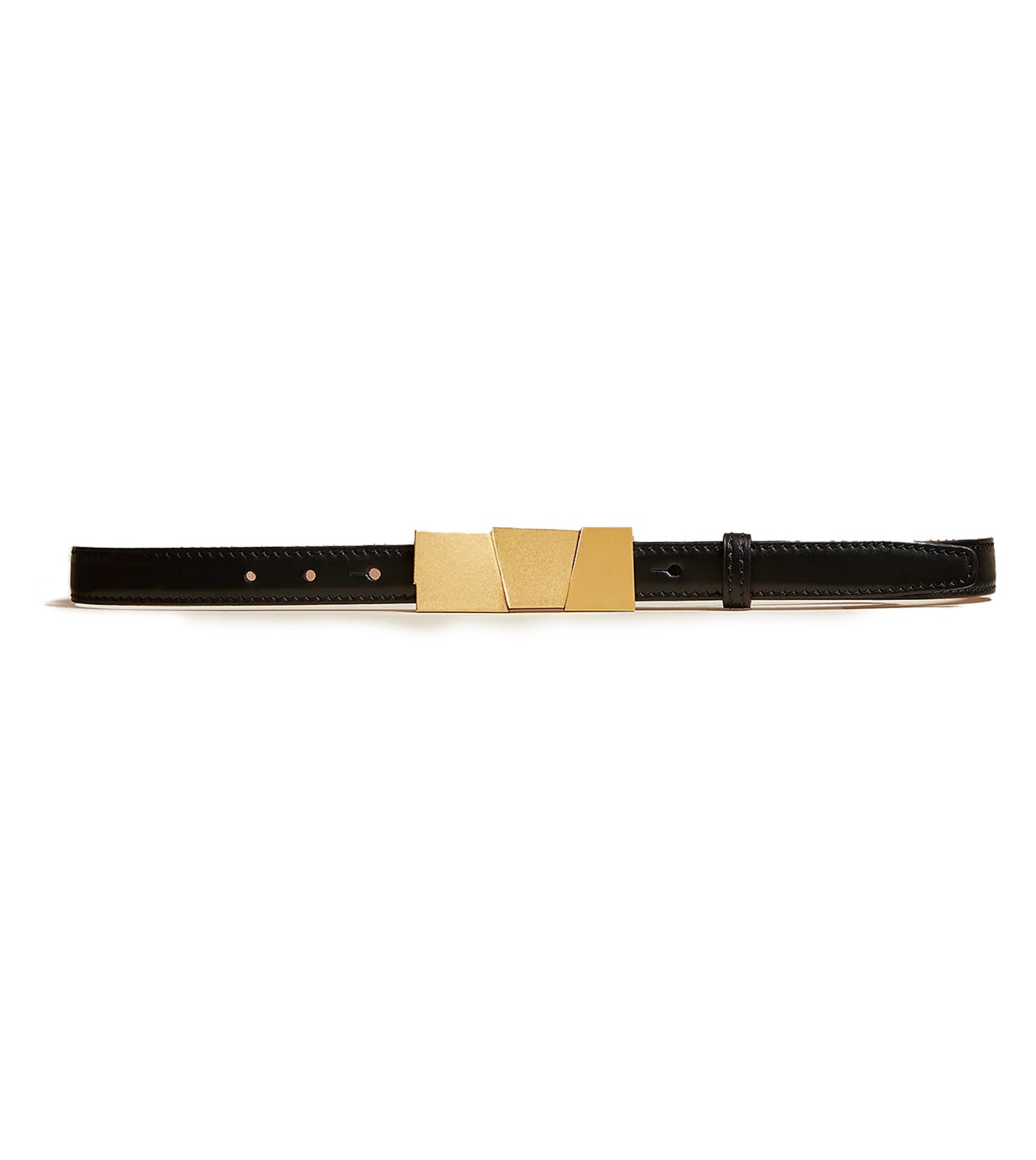 Khaite Axel Belt - Antique Gold (20mm). A sleek belt crafted in Italy of lustrous calfskin and accented with a sculptural press closure of brass plated in 18-karat gold.