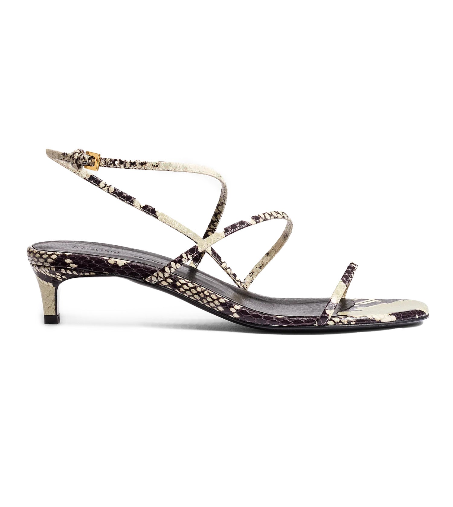 KHAITE Loop Kitten Heel Python-Embossed Look Sandal