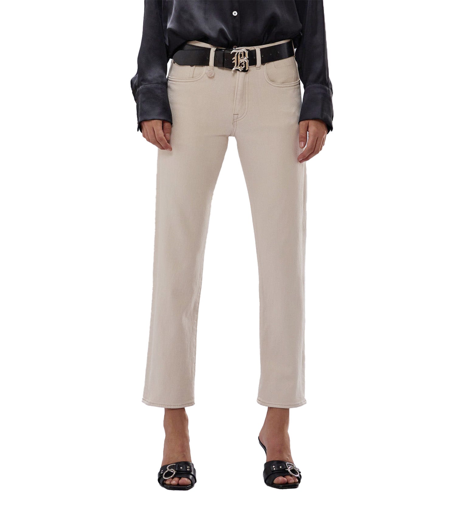 R13 Romeo Jean. Slim variant on the classic boyfriend jean built with yarn dyed Japanese comfort stretch Ecru denim.