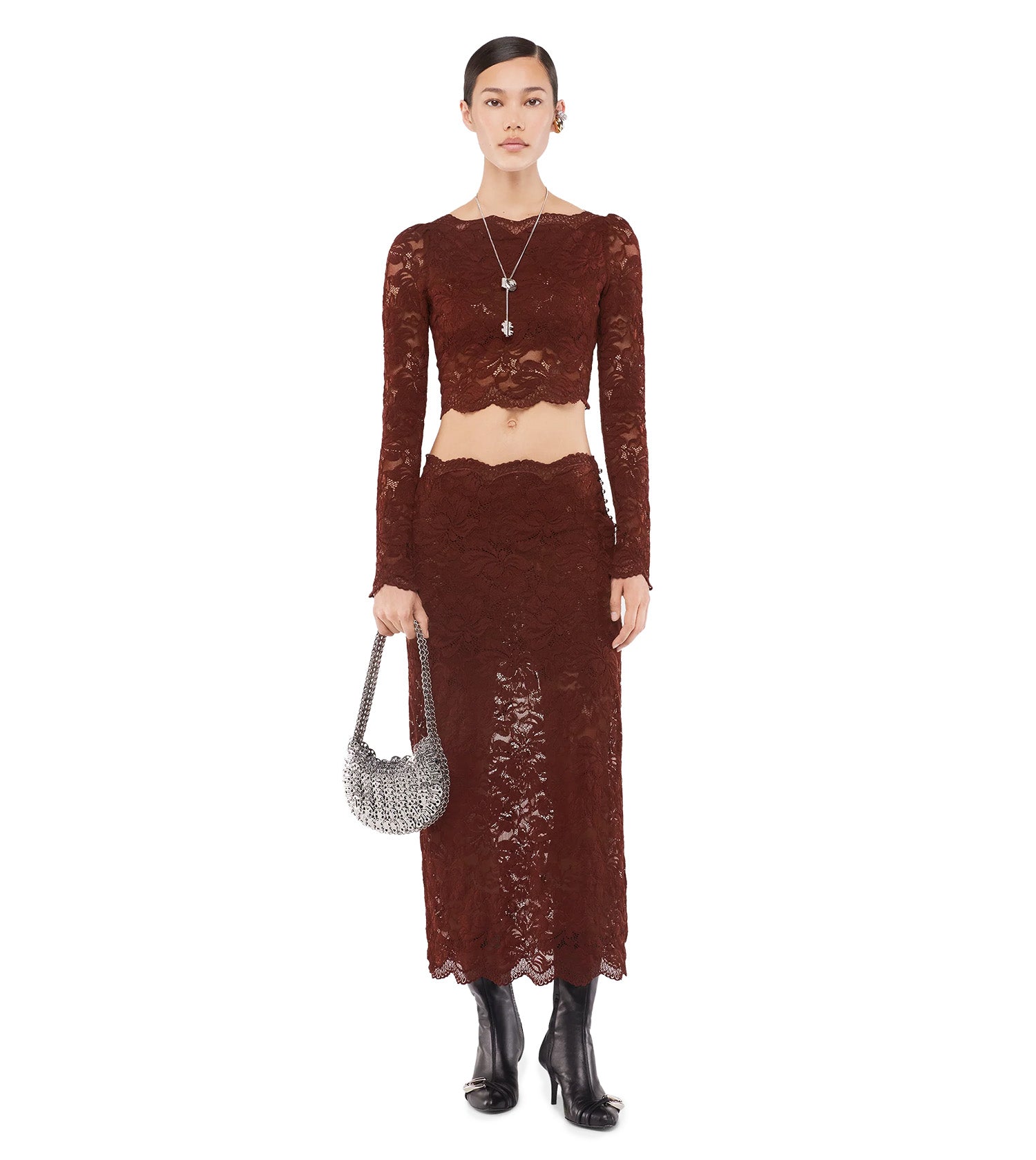 RABANNE Cinnamon Brown Crop Top In Lace