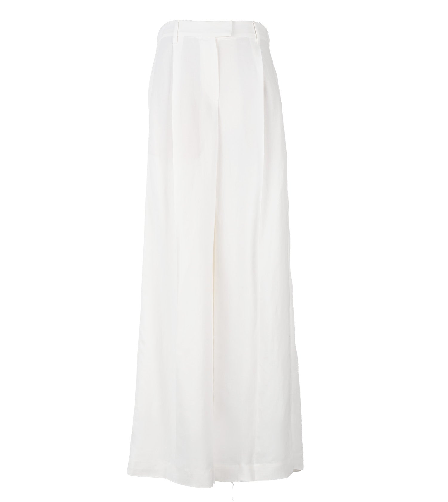 Brunello Cucinelli Wide Leg Linen/ Cotton Pants. Fluid lines and tailored elegance pair perfectly in these Loose Pleated trousers. The pleats run lightly down the entire length of the leg to emphasize the slender silhouette’s relaxed, feminine fit.