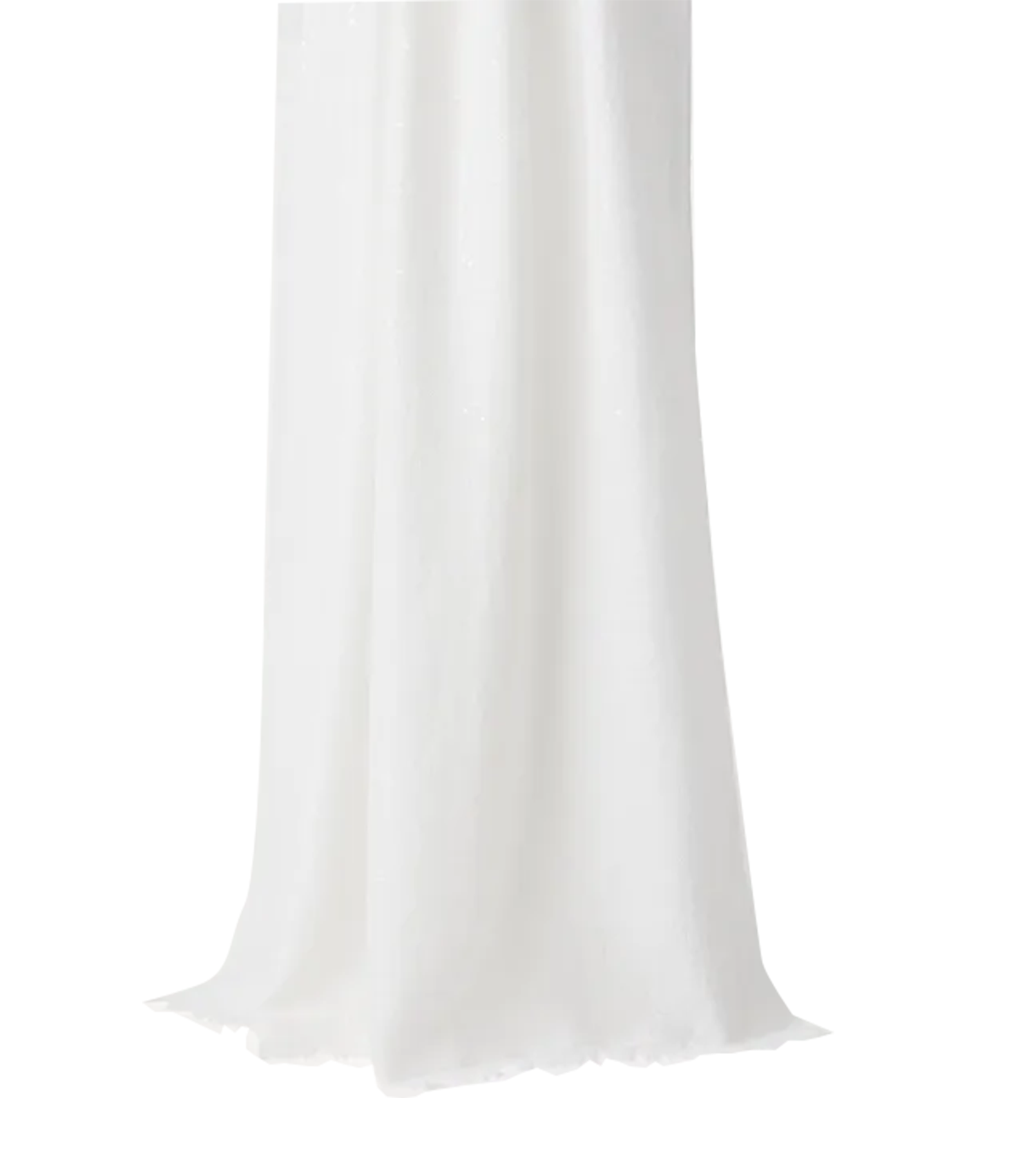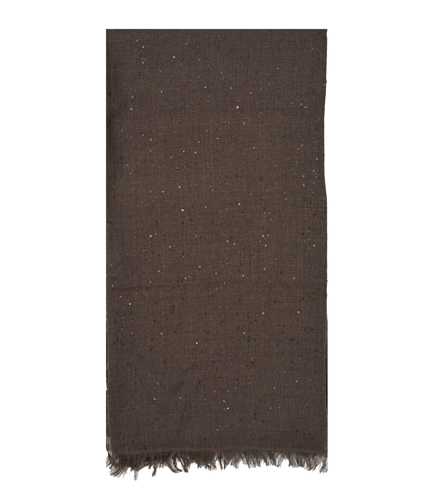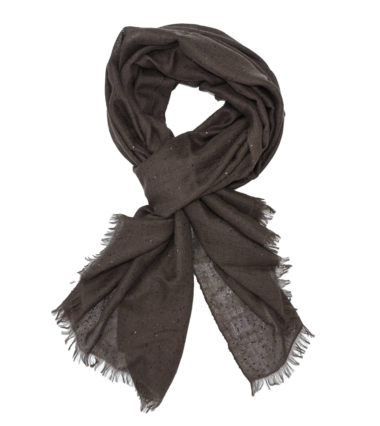 Lightweight Brunello Cucinellii Scarf. Refined workmanship and precious materials define the style of this elegant and versatile scarf. The soft, lightweight texture of the cashmere and silk Diamond yarn incorporates small paillettes that spread delicate sparkling reflections across the entire surface.