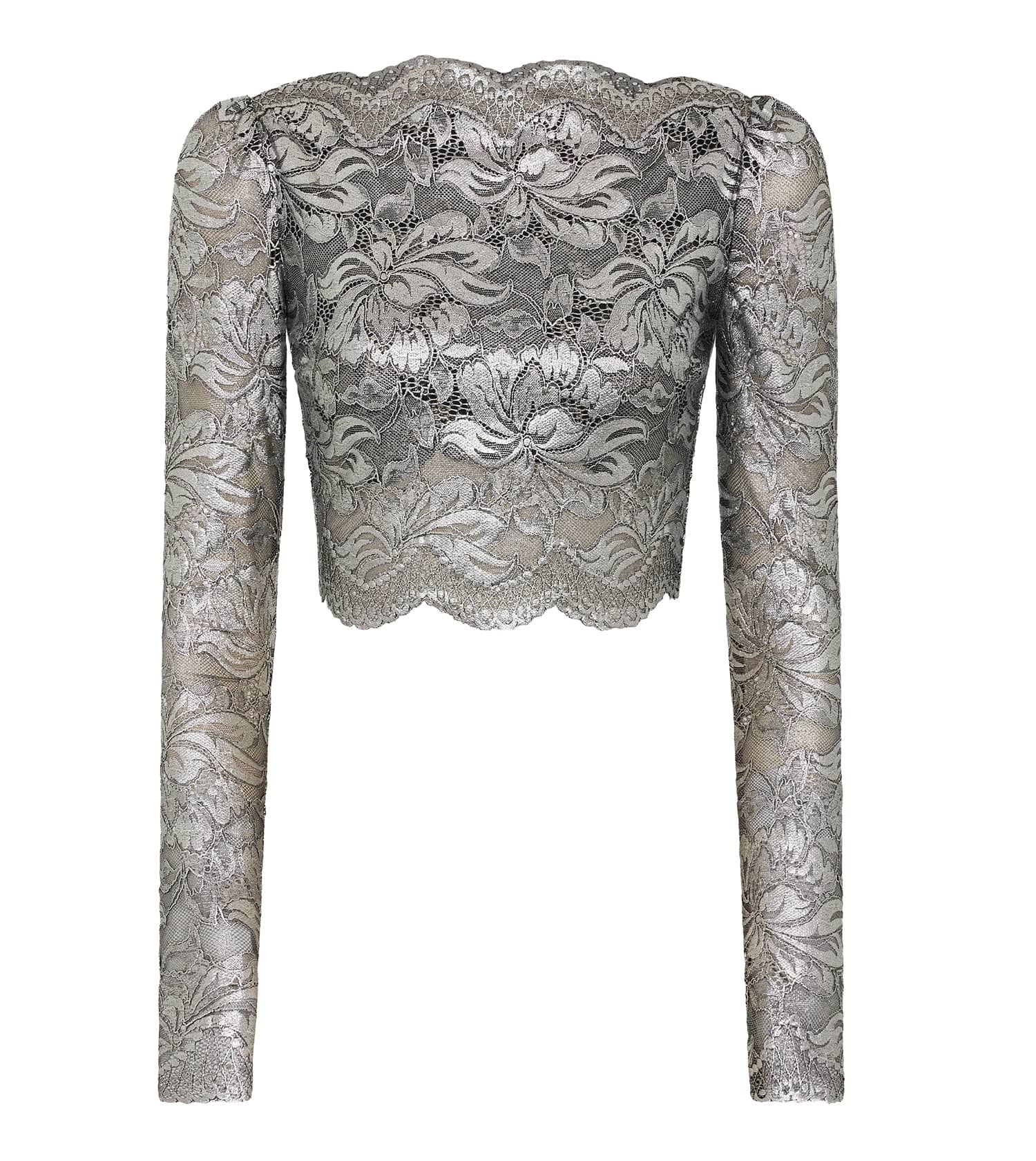 Rabanne Silver Coated Lace Crop Top.