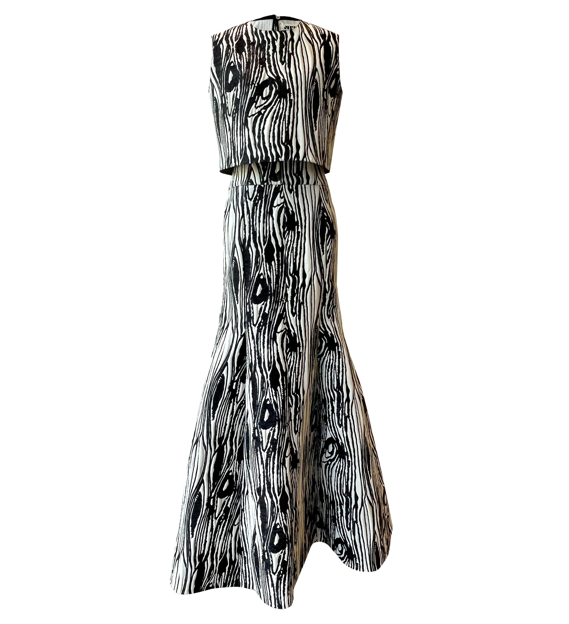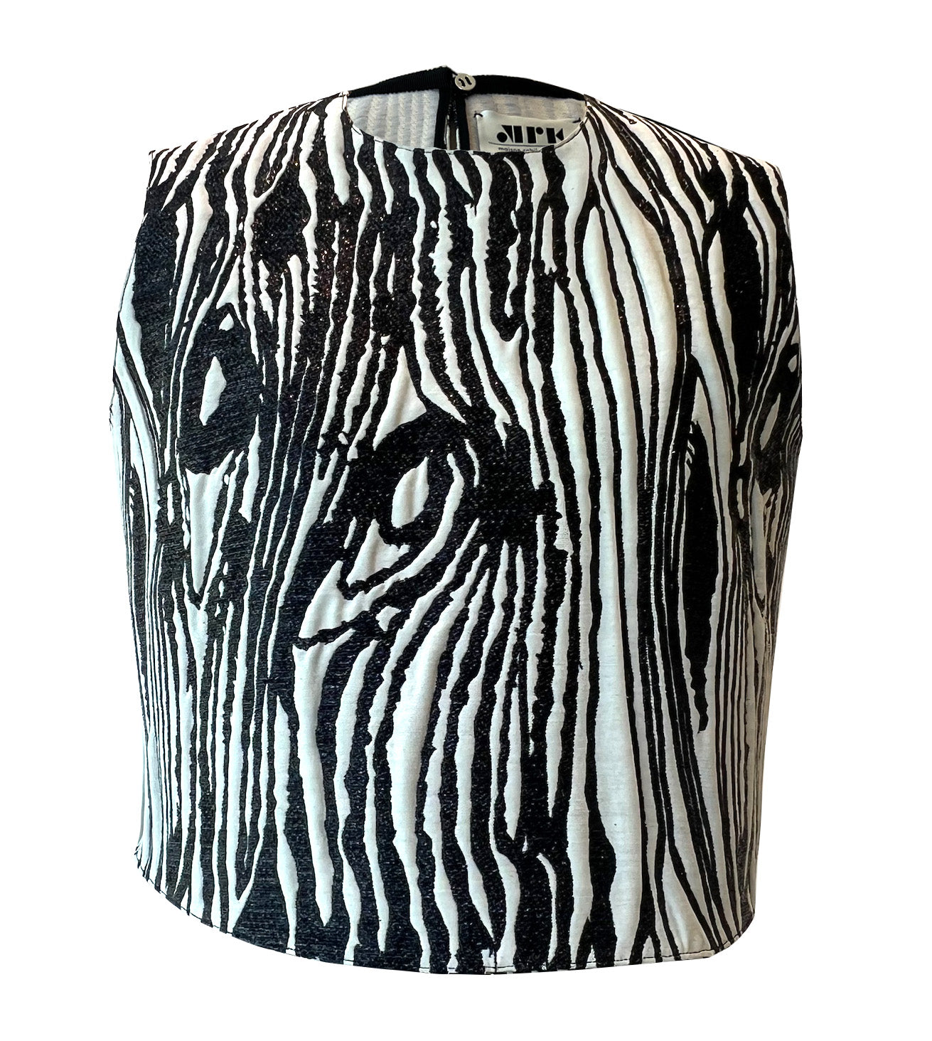 Maison Rabih Kayrouz Moire Lurex Sleeveless Top, in Ivory and Black. Pair with matching shirt.