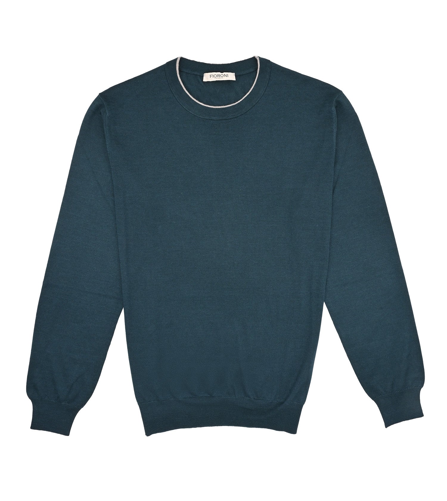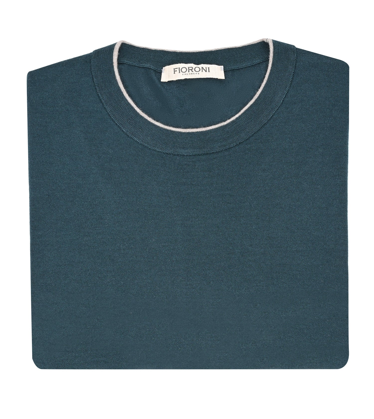 70% Cashmere/30%Silk Crewneck Sweater. Extra fine cashmere and silk round neck sweater with contrast color details.
